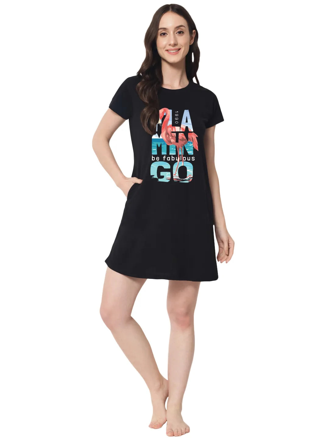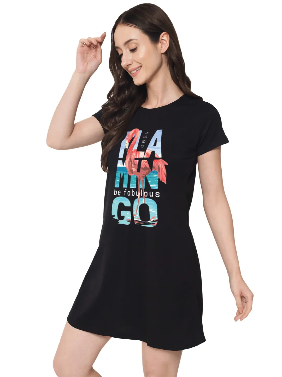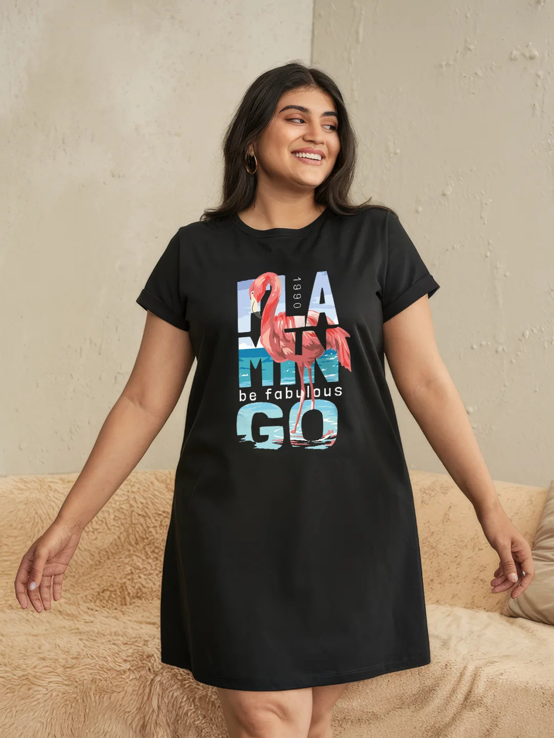 Get ready for summer with our 'Be Fabulous Tee Dress' With a vibrant and colorful flamingo print and the phrase 'Flamingo and be fabulous,' this top is perfect for lounging or running errands. Made with soft and stretchy material, this top is both comfortable and stylish