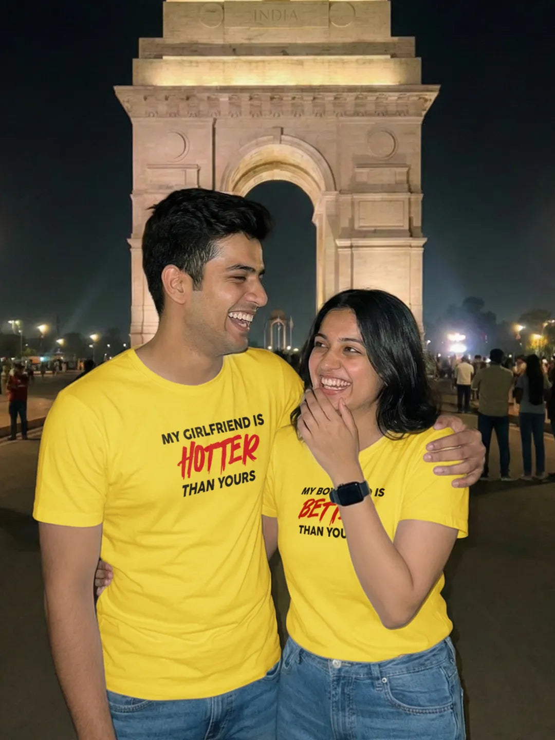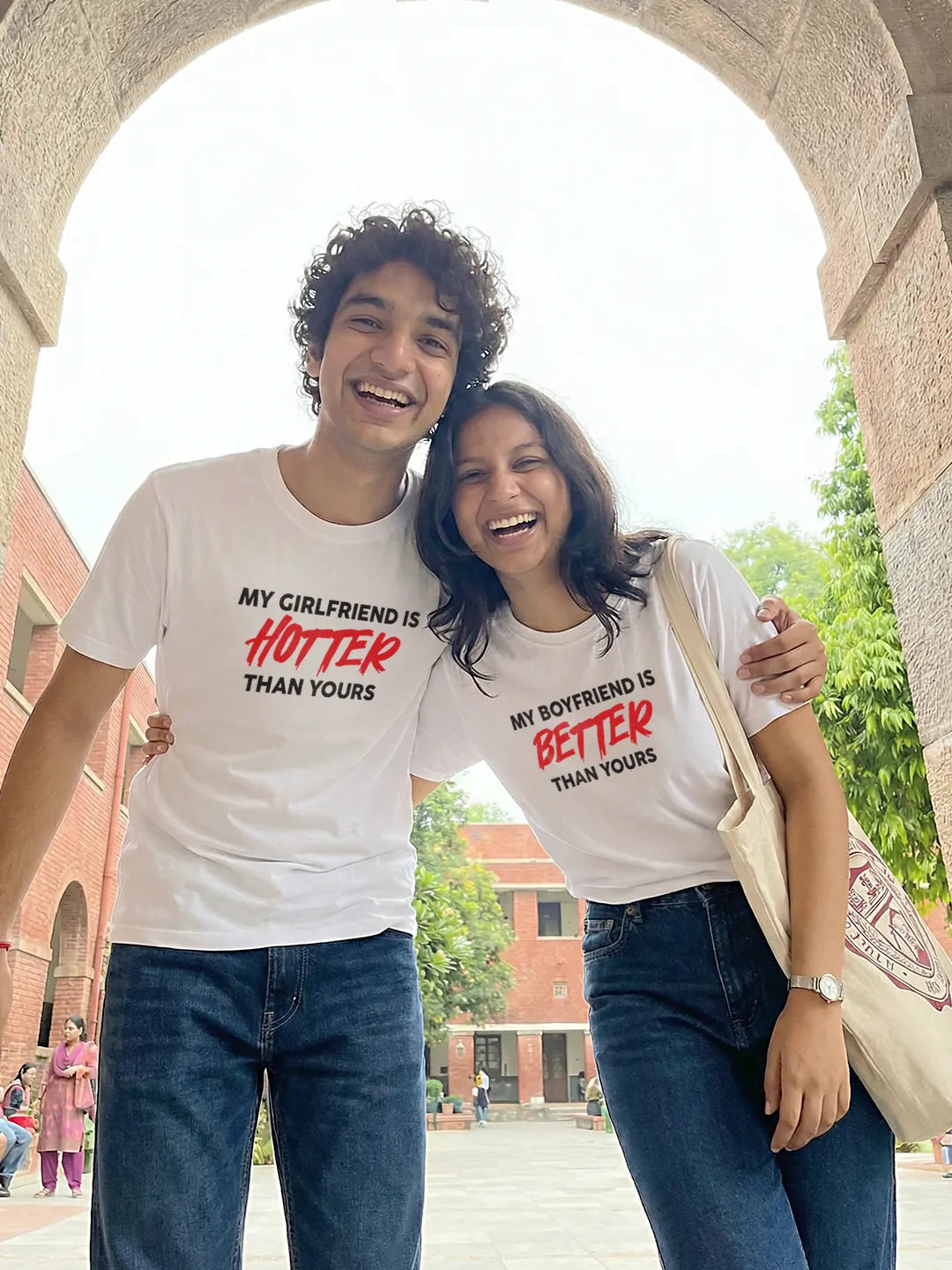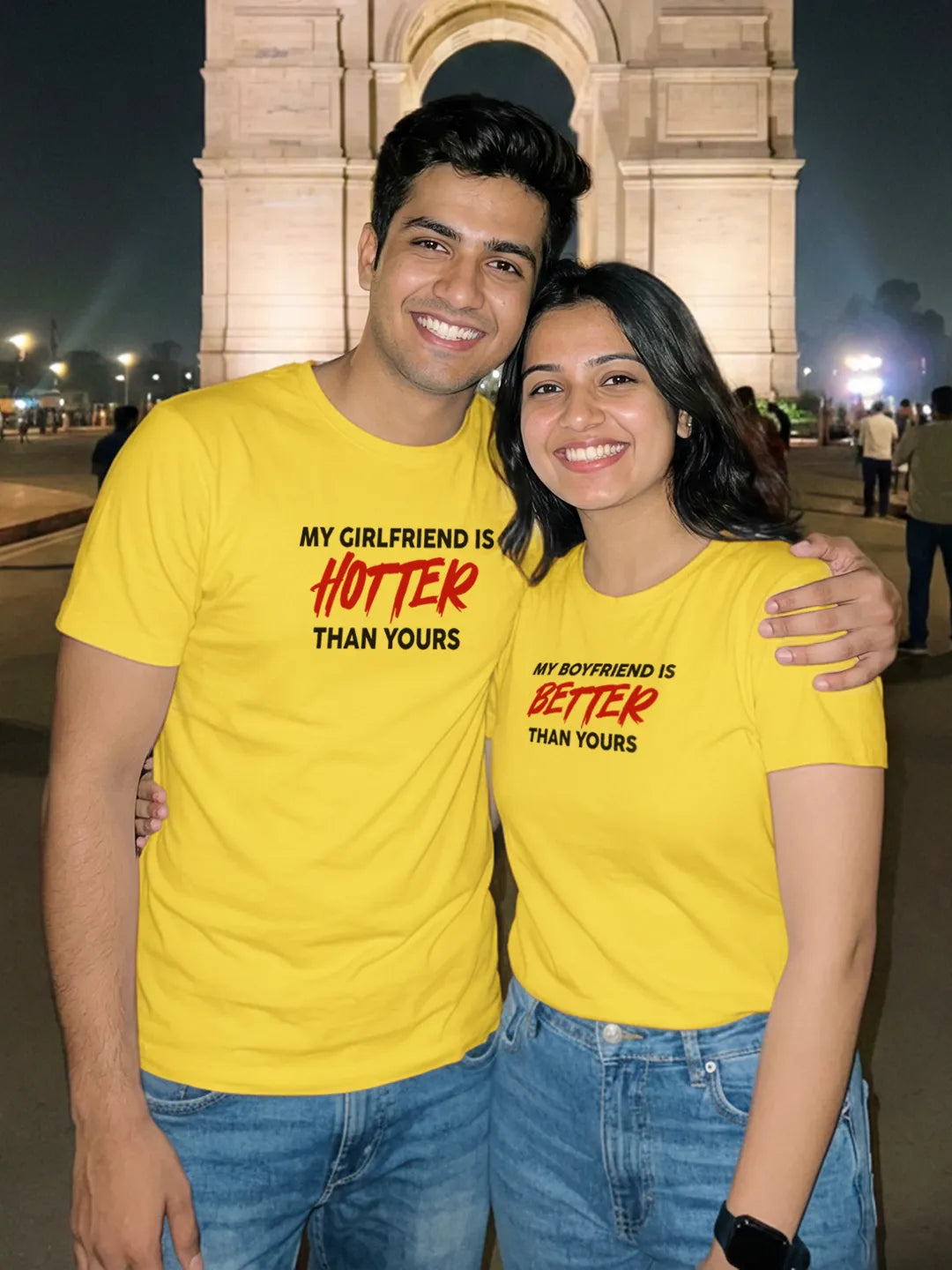 Make a bold statement this Valentine’s with these playful Matching Valentine’s T-Shirts for couples, designed for duos who love confidence with a clean, classic twist. Featuring the cheeky phrases “My Girlfriend is HOTTER Than Yours” and “My Boyfriend is BETTER Than Yours”, this set says it all—loud enough to be noticed, stylish enough to stay timeless.