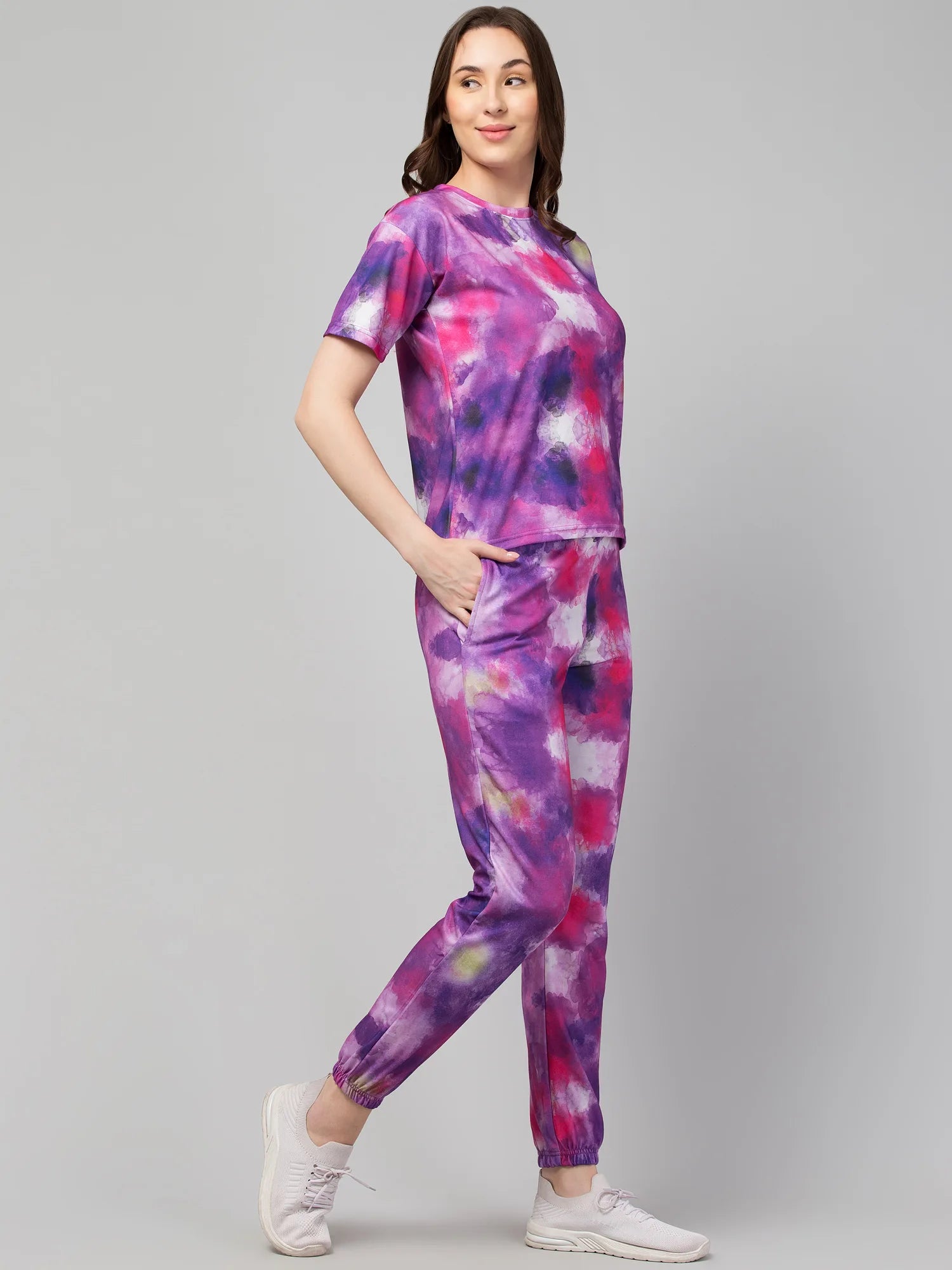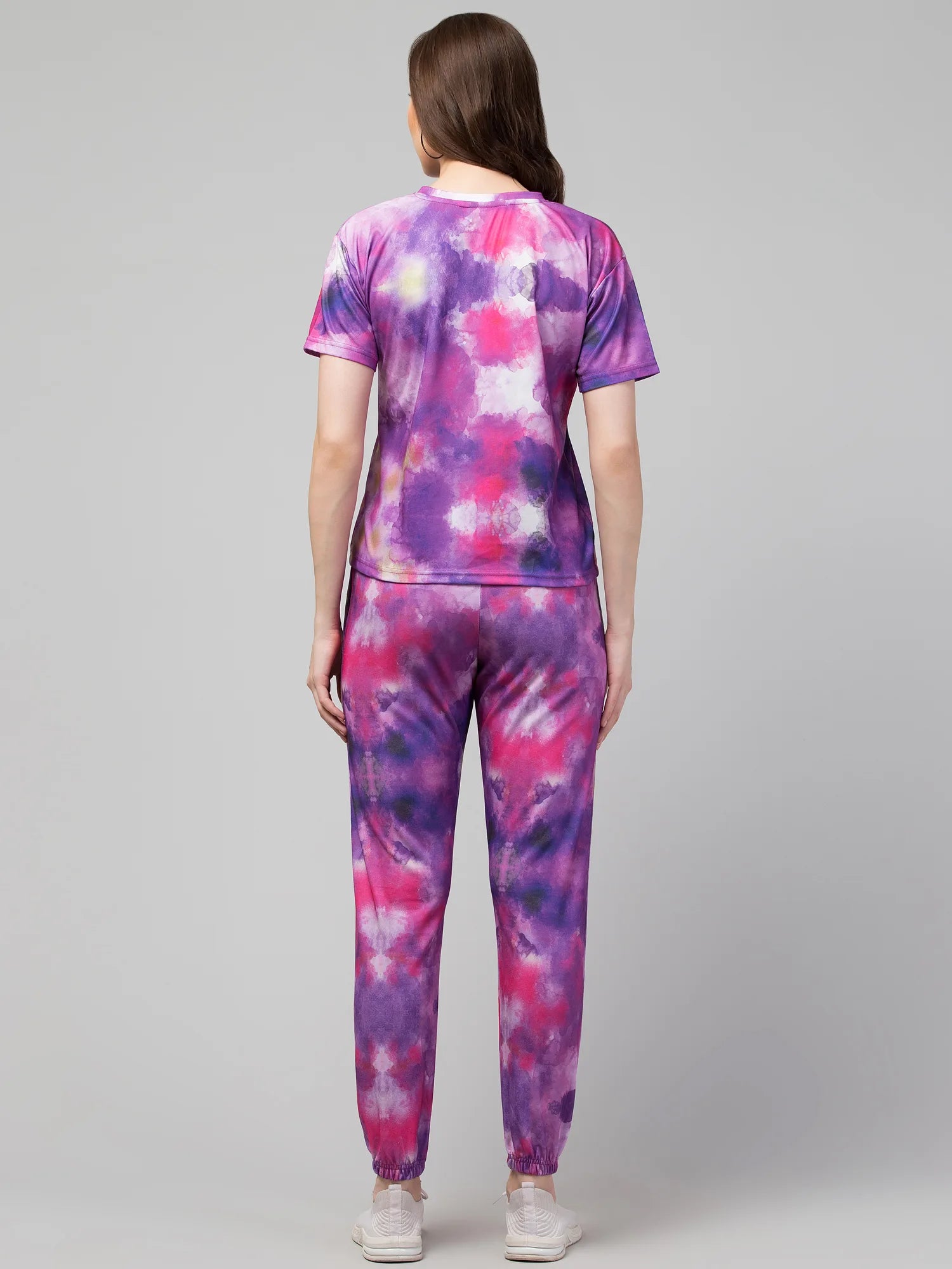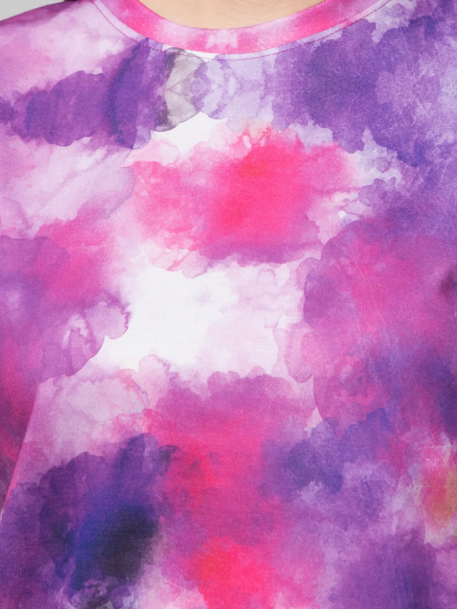 Embrace the artistry of the cosmos with our "Cosmic Wash Coord Set". This trendy t-shirt and jogger combination boasts a distinctive tie-dye print that mirrors the mysterious beauty of the universe. The texture-rich compositions inspired by lith printing give it an unusual, captivating appeal. Set in hues of dark pink and dark gray, the design brings to mind medicalcore aesthetics, characterized by close-up imitations of material stains/washes. This coord set is as comfortable as it is fashionable, making it an excellent choice for your loungewear collection. Explore the universe of style with our Cosmic Wash Coord Set!