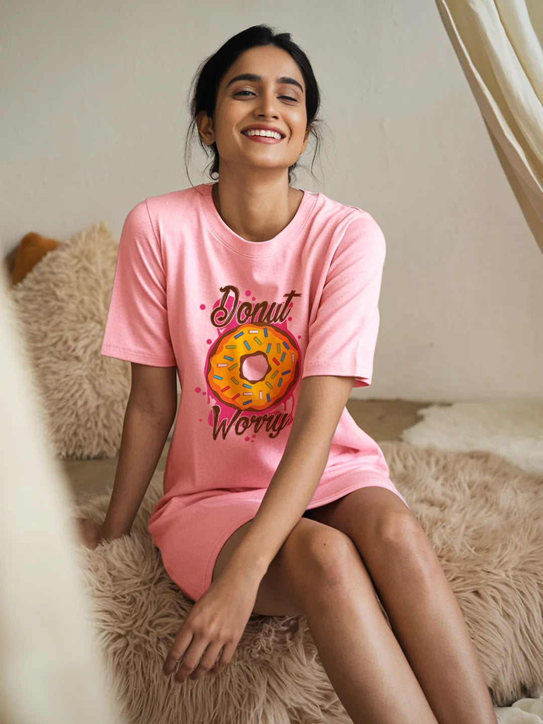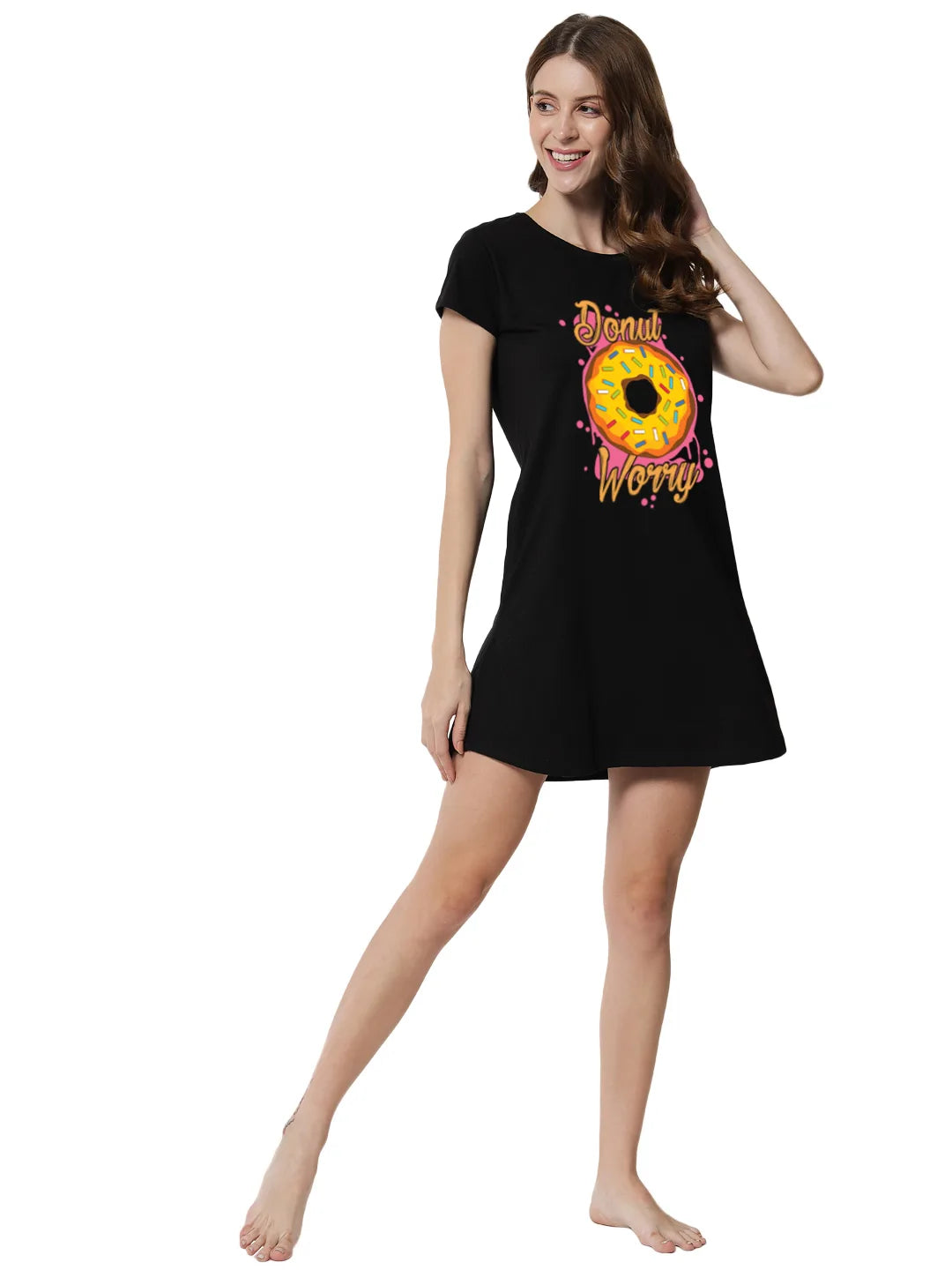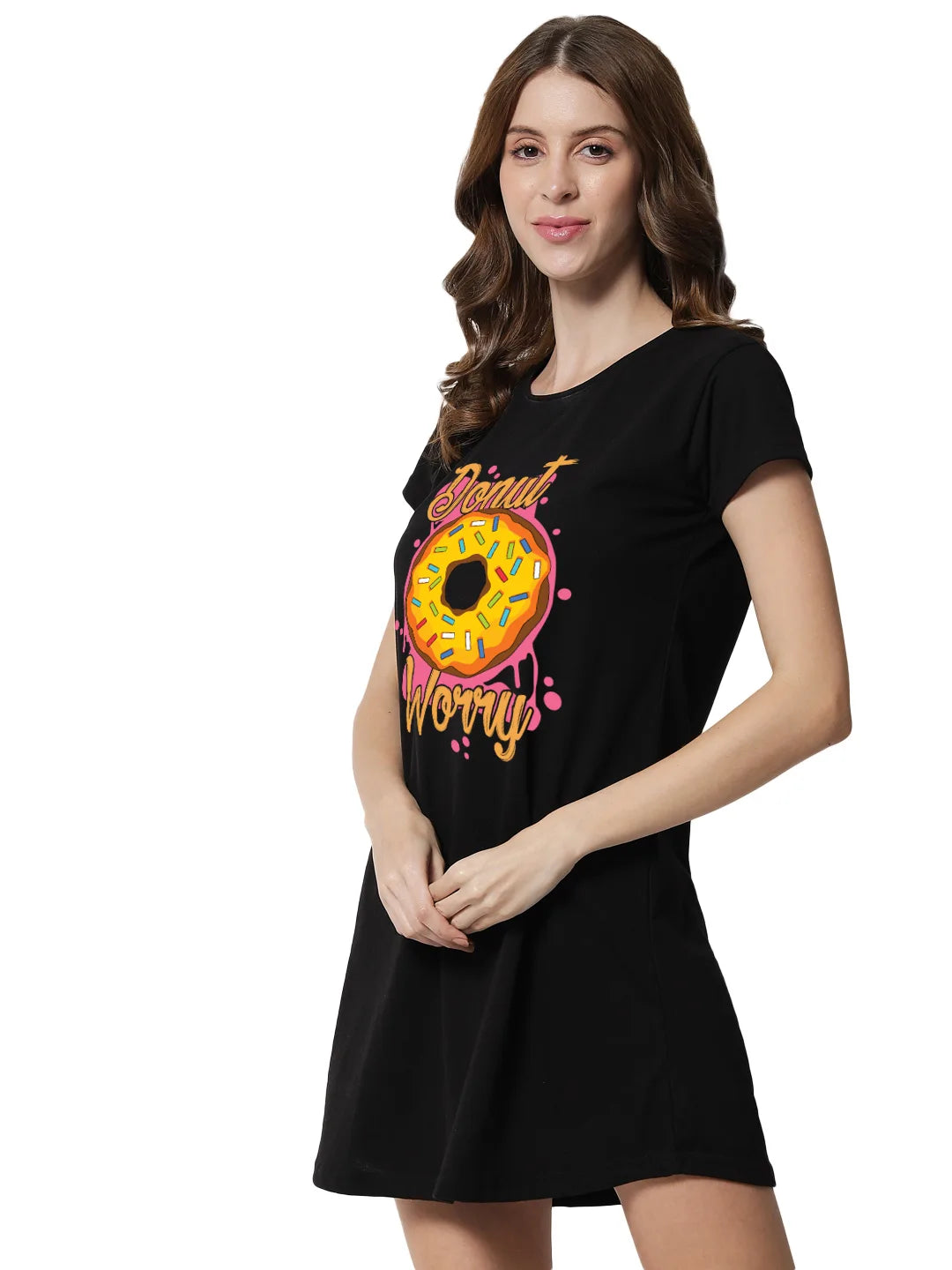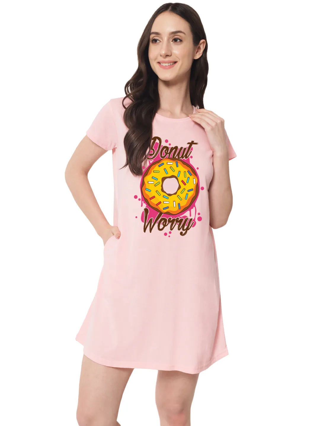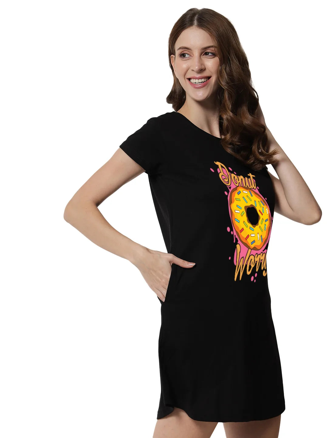 Indulge in some sweet style with our 'Donut Worry' print. This fun and playful design features a delicious-looking donut with the message 'Donut Worry' in bold letters, set against a colorful background. Made with high-quality materials and available in a range of sizes, this garment is perfect for anyone who wants to add a touch of whimsy to their wardrobe. Whether you wear it to brunch or out with friends, our 'Donut Worry' print is sure to make a statement and remind you to enjoy the little things in life.