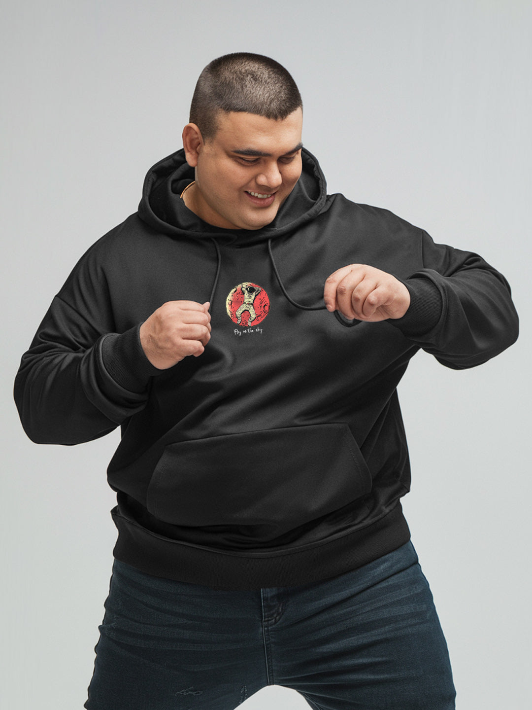 Designed with an oversized comfort fit, it drapes effortlessly on broad and plus-size bodies, offering maximum mobility and a modern silhouette. The kangaroo pocket keeps your hands warm and your essentials close, while the ribbed cuffs and hem lock in heat for all-day coziness.