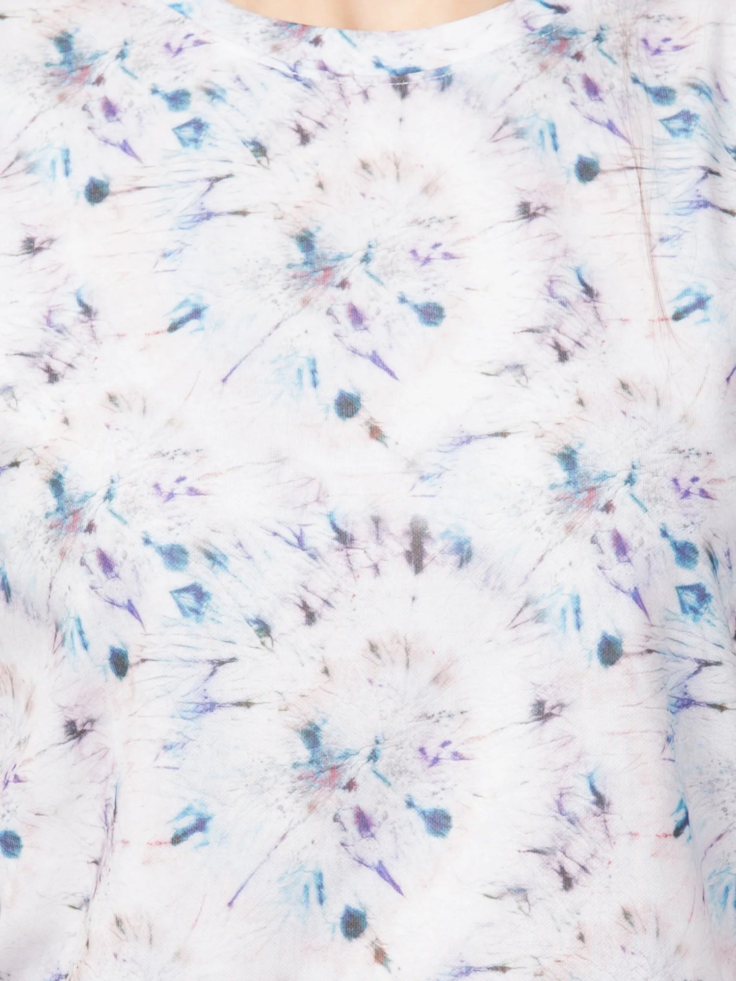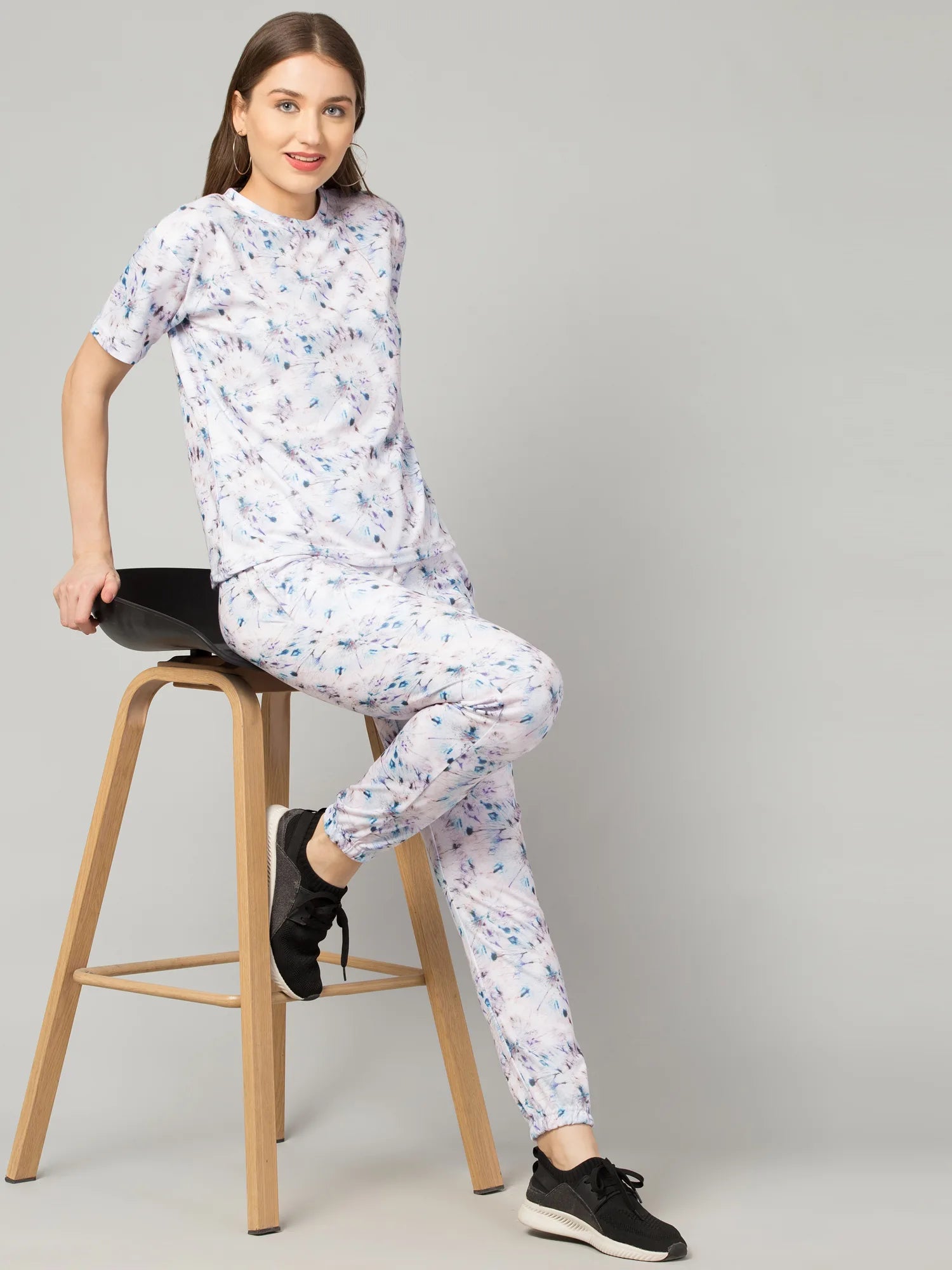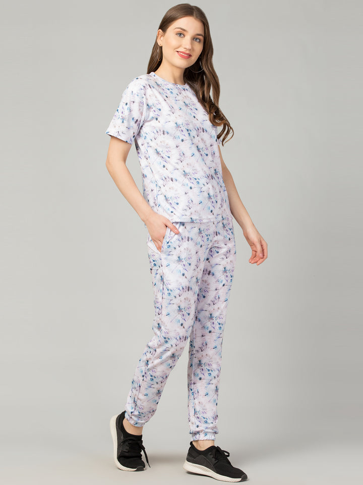 Introducing our "Feathered Finesse Coord Set", where comfort meets artistry. This t-shirt and jogger combination features a tie-dye print that exudes an aura of laid-back elegance. Close-up intensity, a scattering composition, and the interplay of dark white and light azure colors create an appealing aesthetic. The design is further enhanced by fine feather details, adding a touch of nature-inspired beauty. The white background enhances the colors and patterns, while opacity and translucency lend an ethereal quality to the ensemble. With our Feathered Finesse Coord Set, you can enjoy comfort without compromising on style.