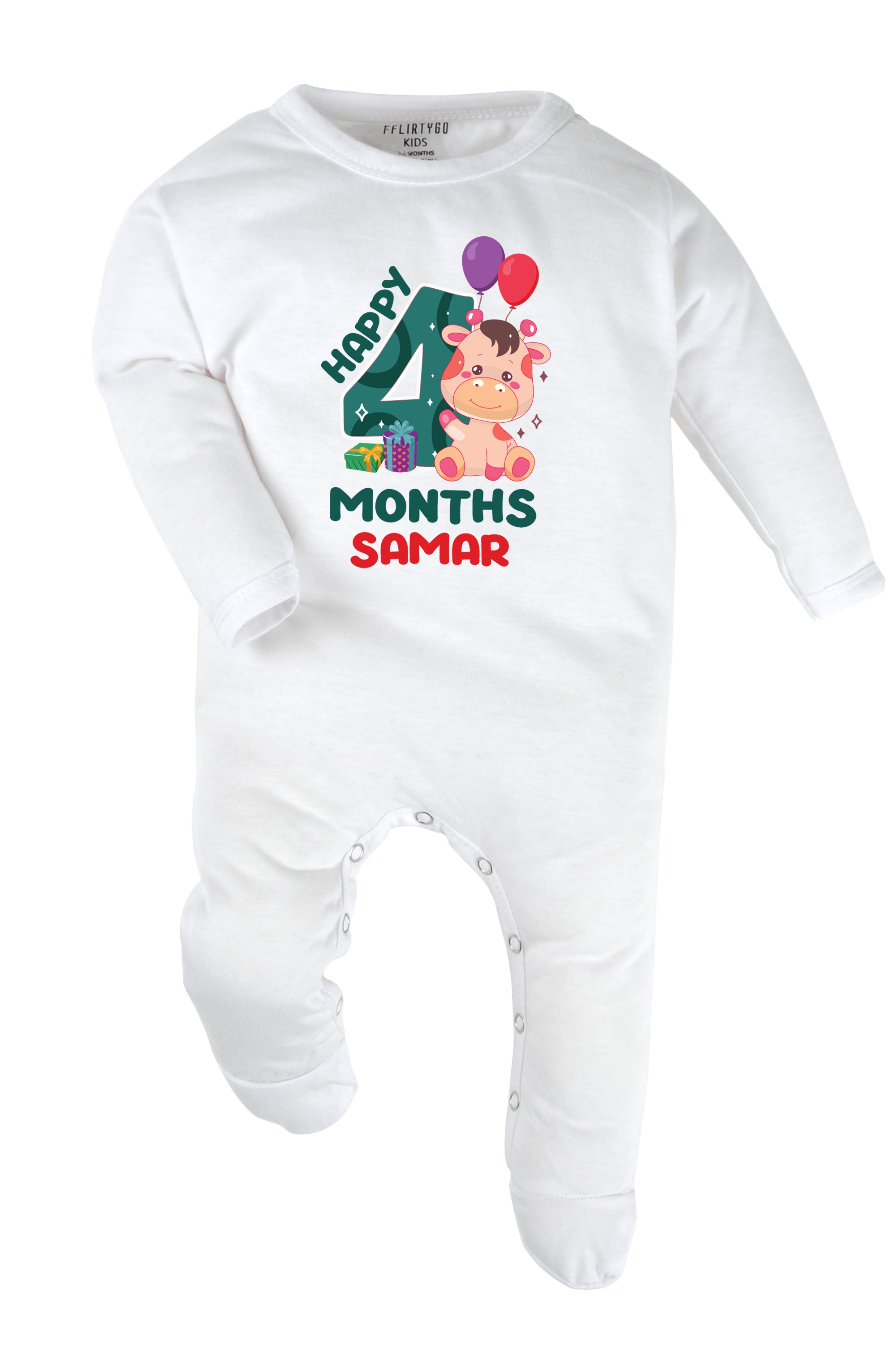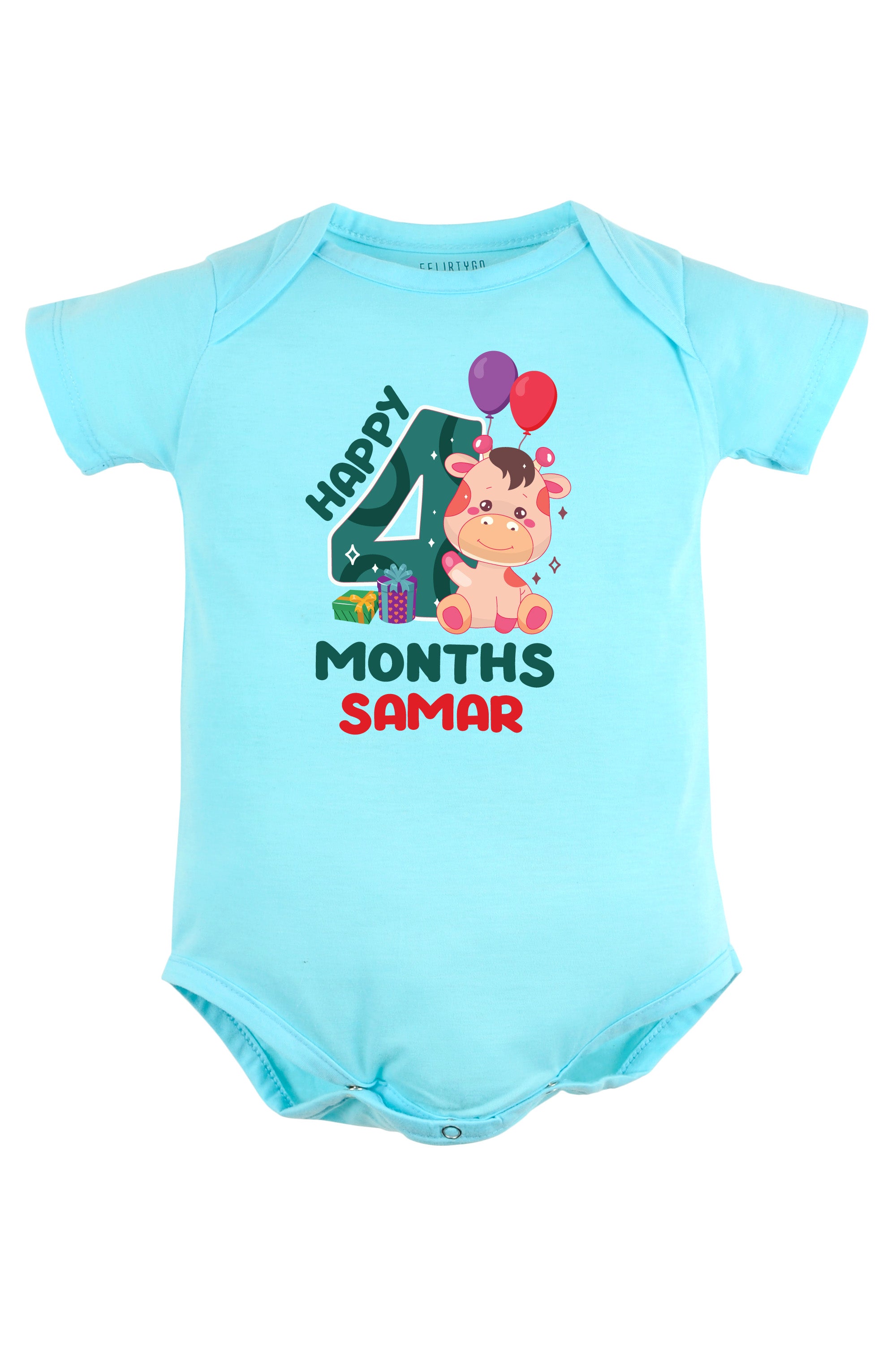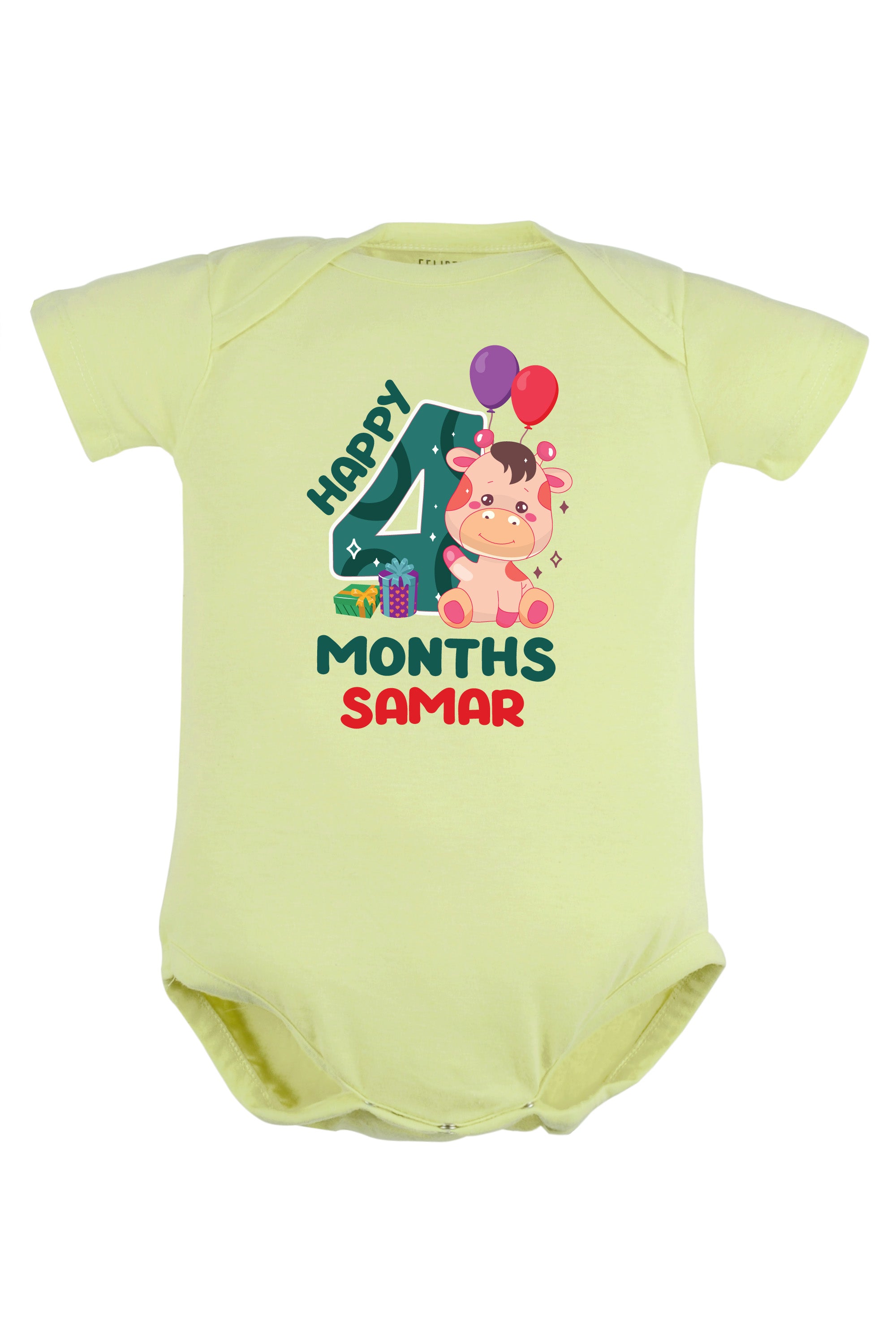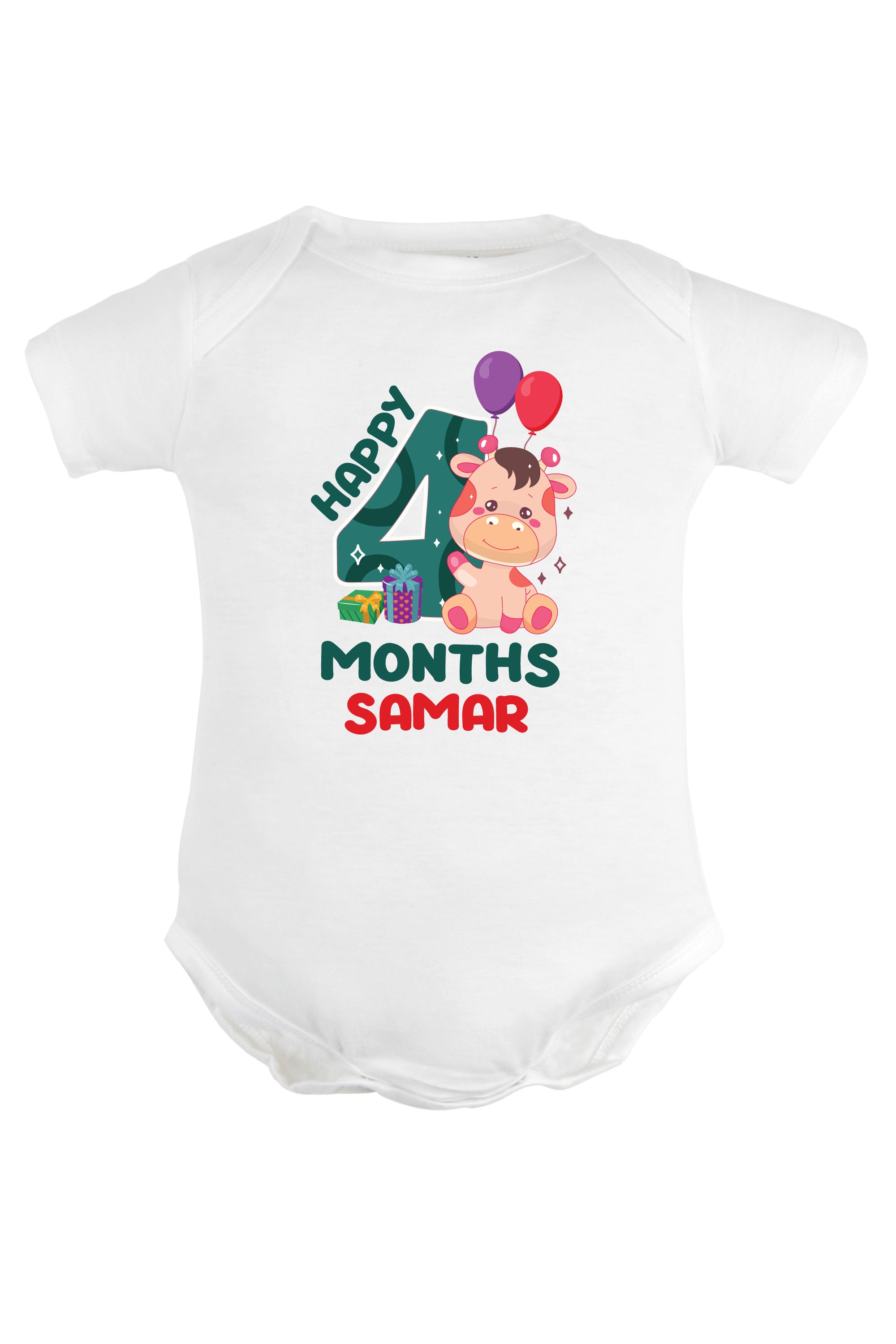 • Four Month Milestone Baby Romper | Onesies - Giraffe w/ Custom Name