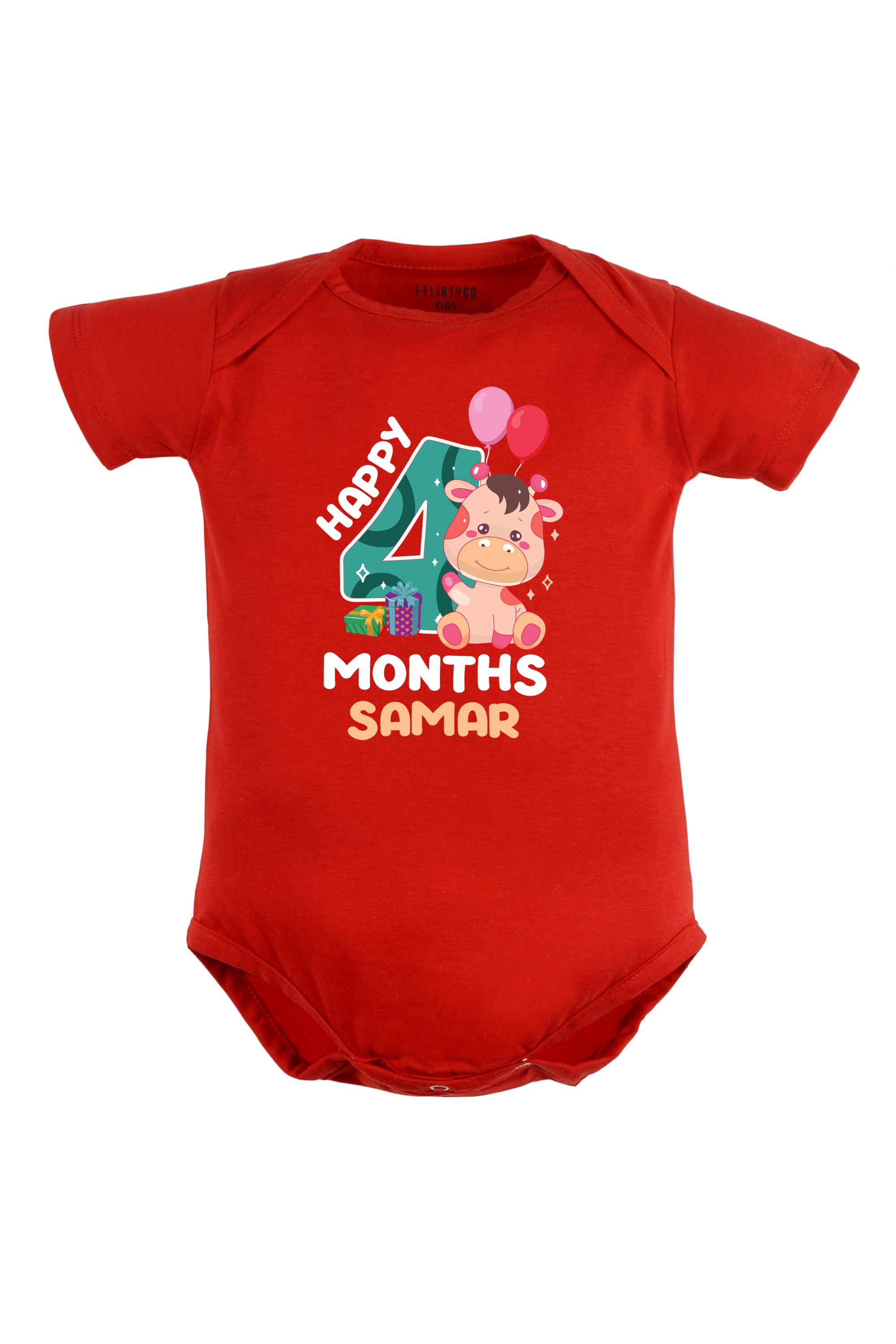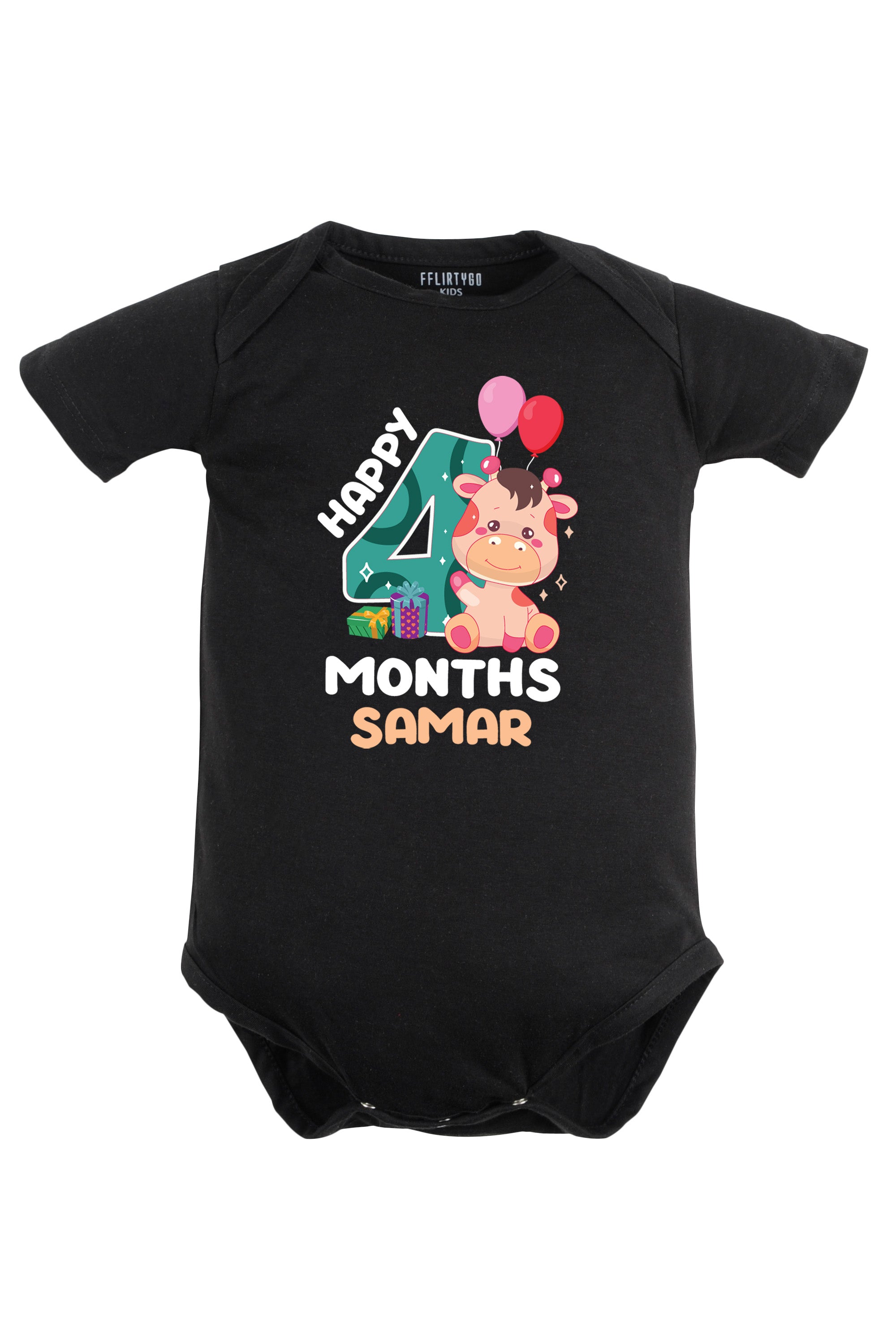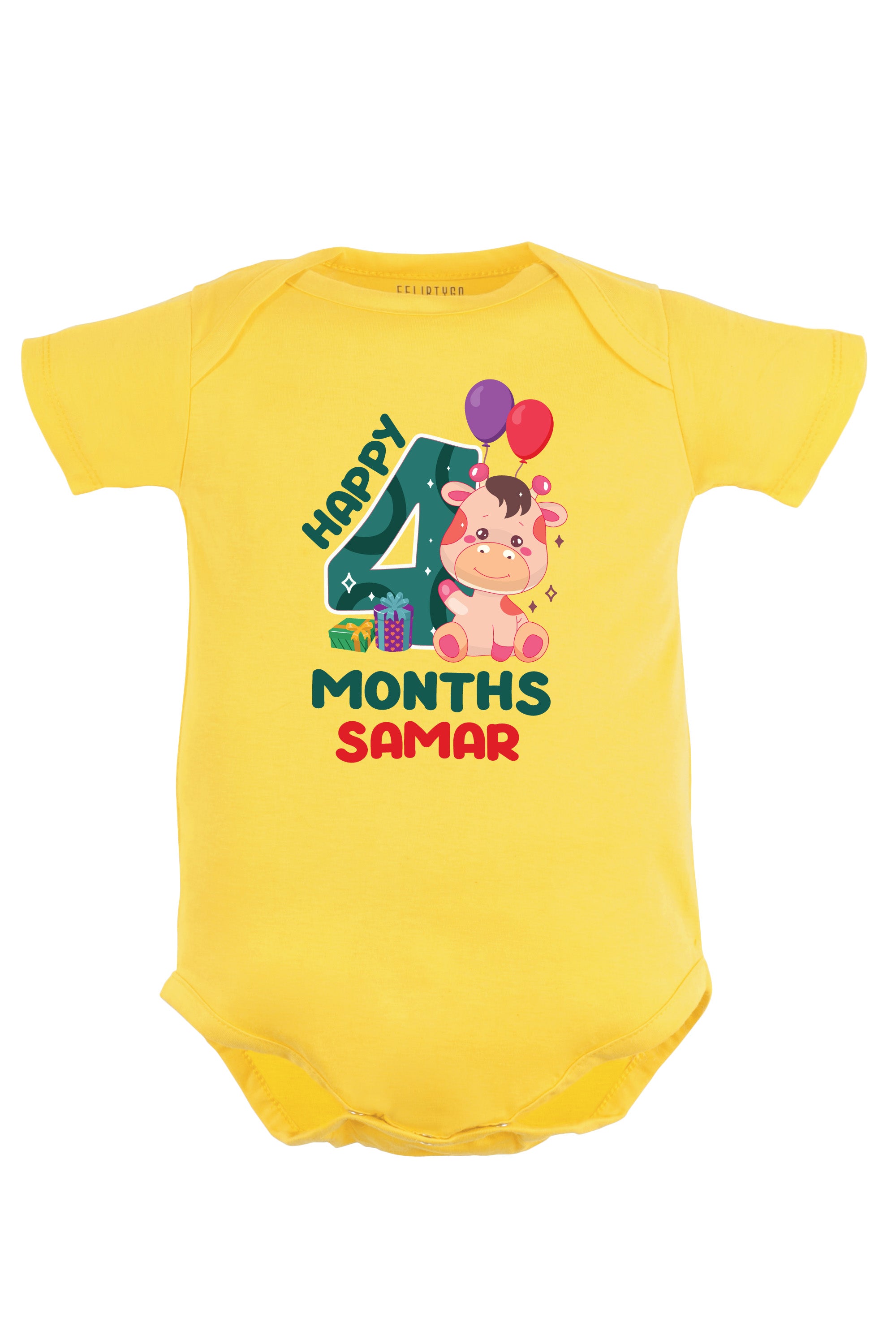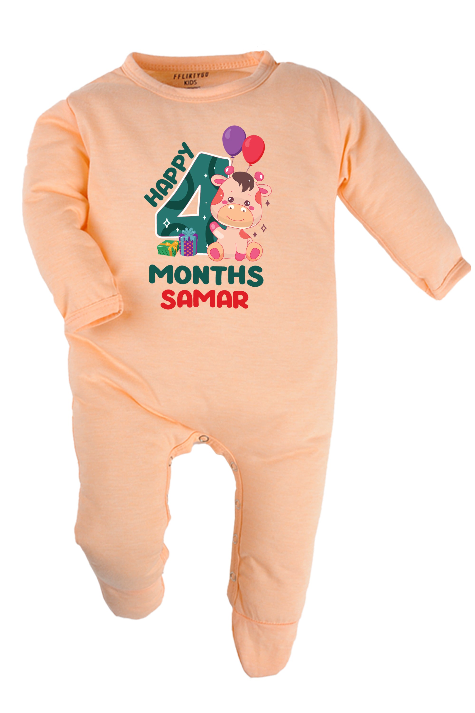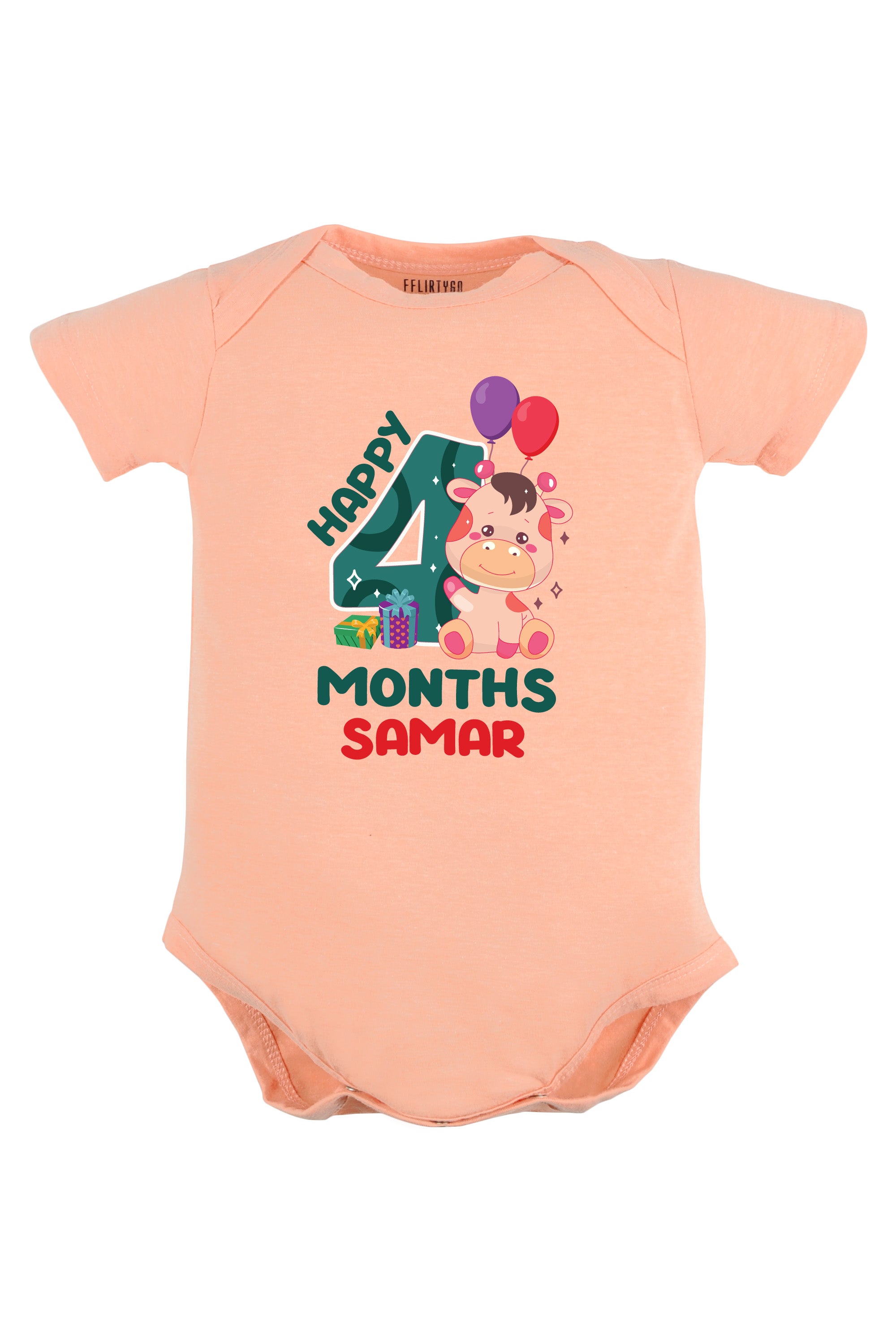 • Four Month Milestone Baby Romper | Onesies - Giraffe w/ Custom Name
