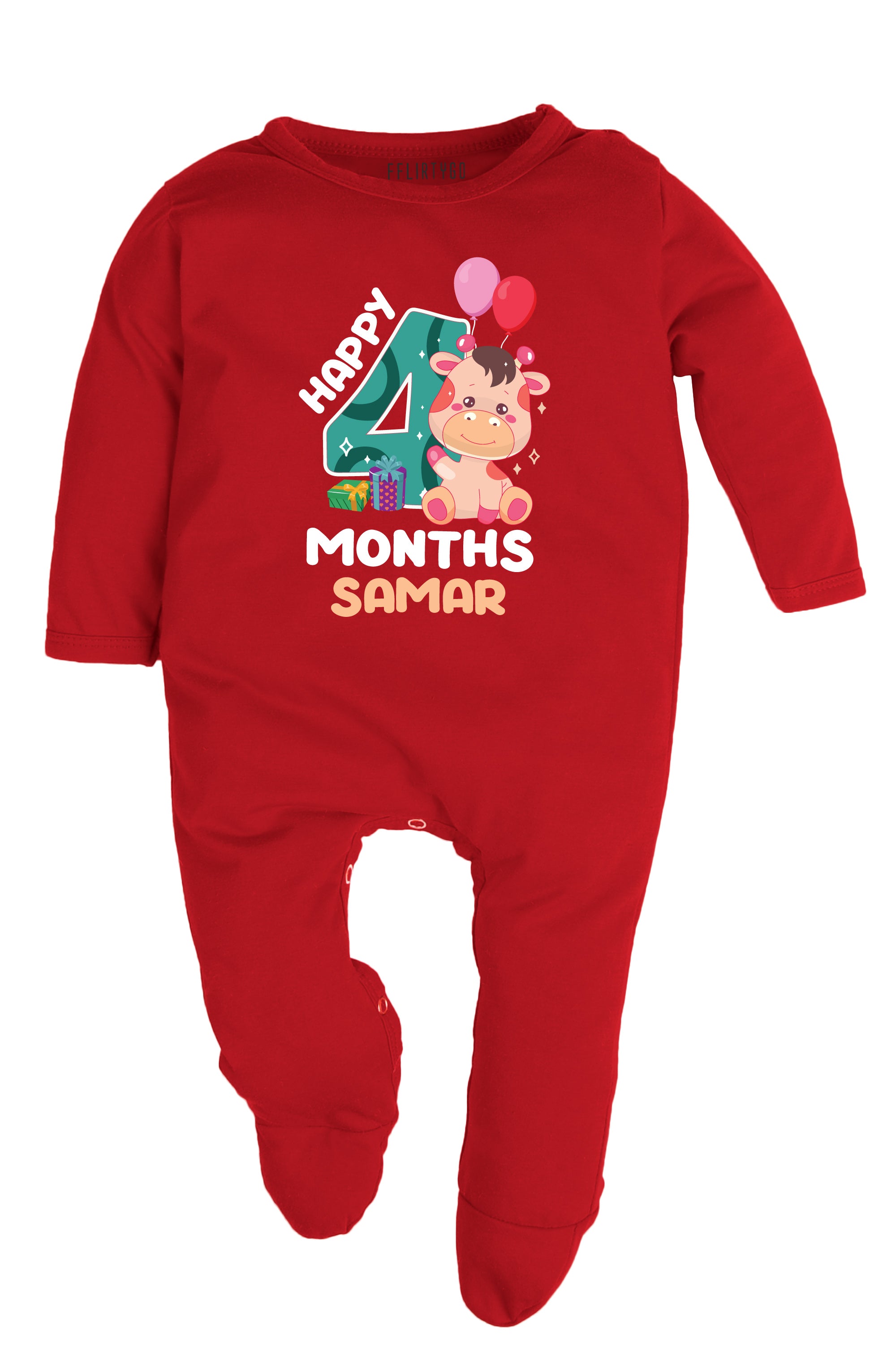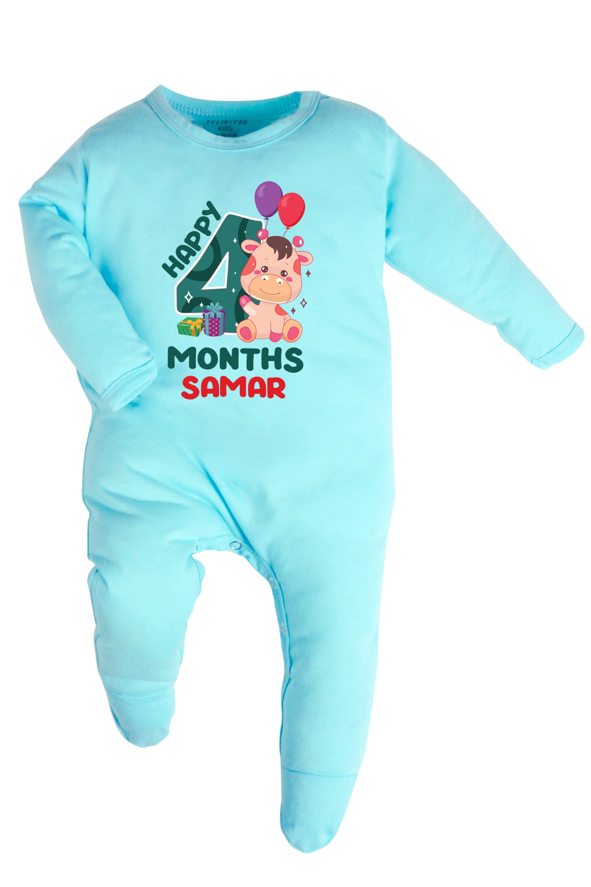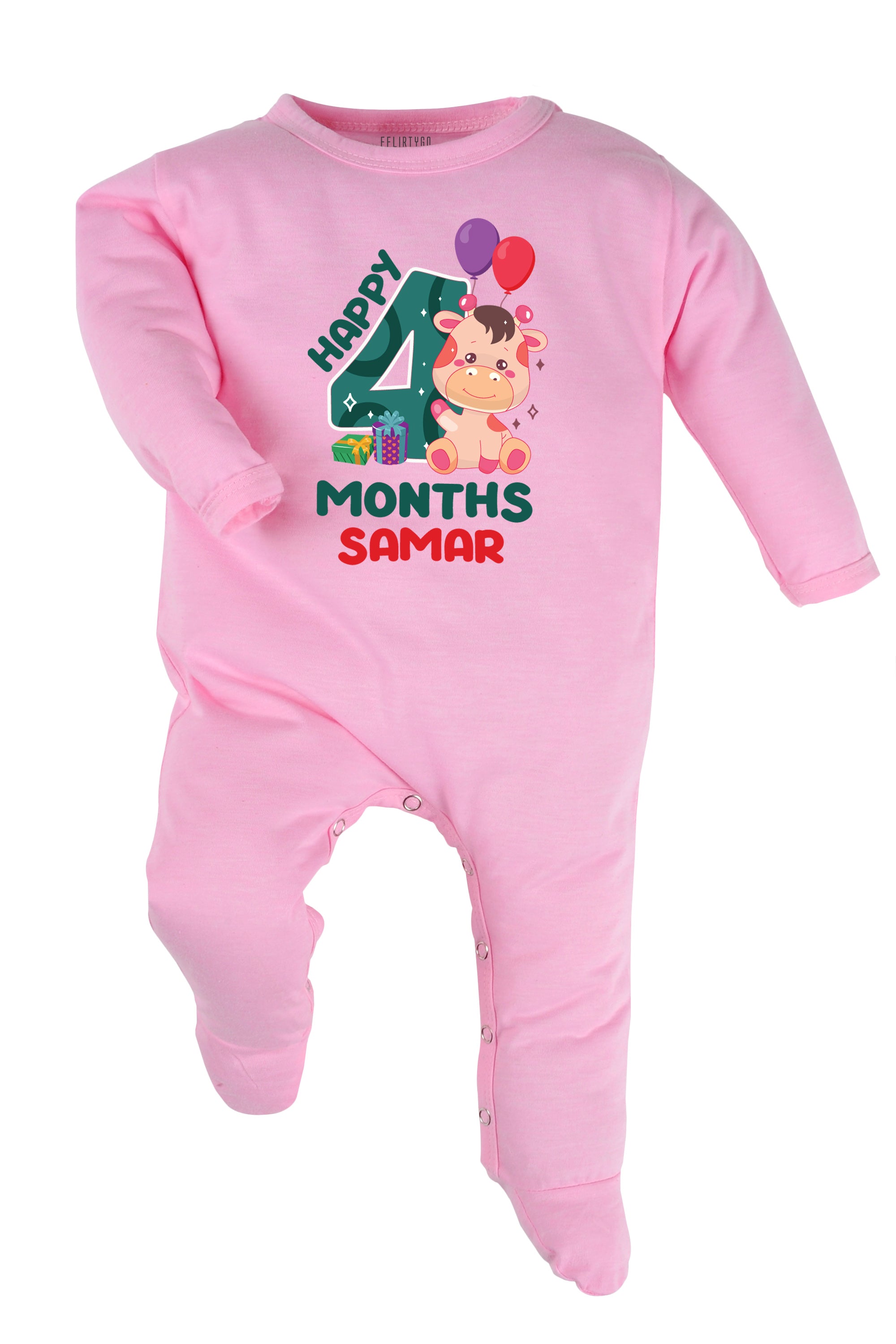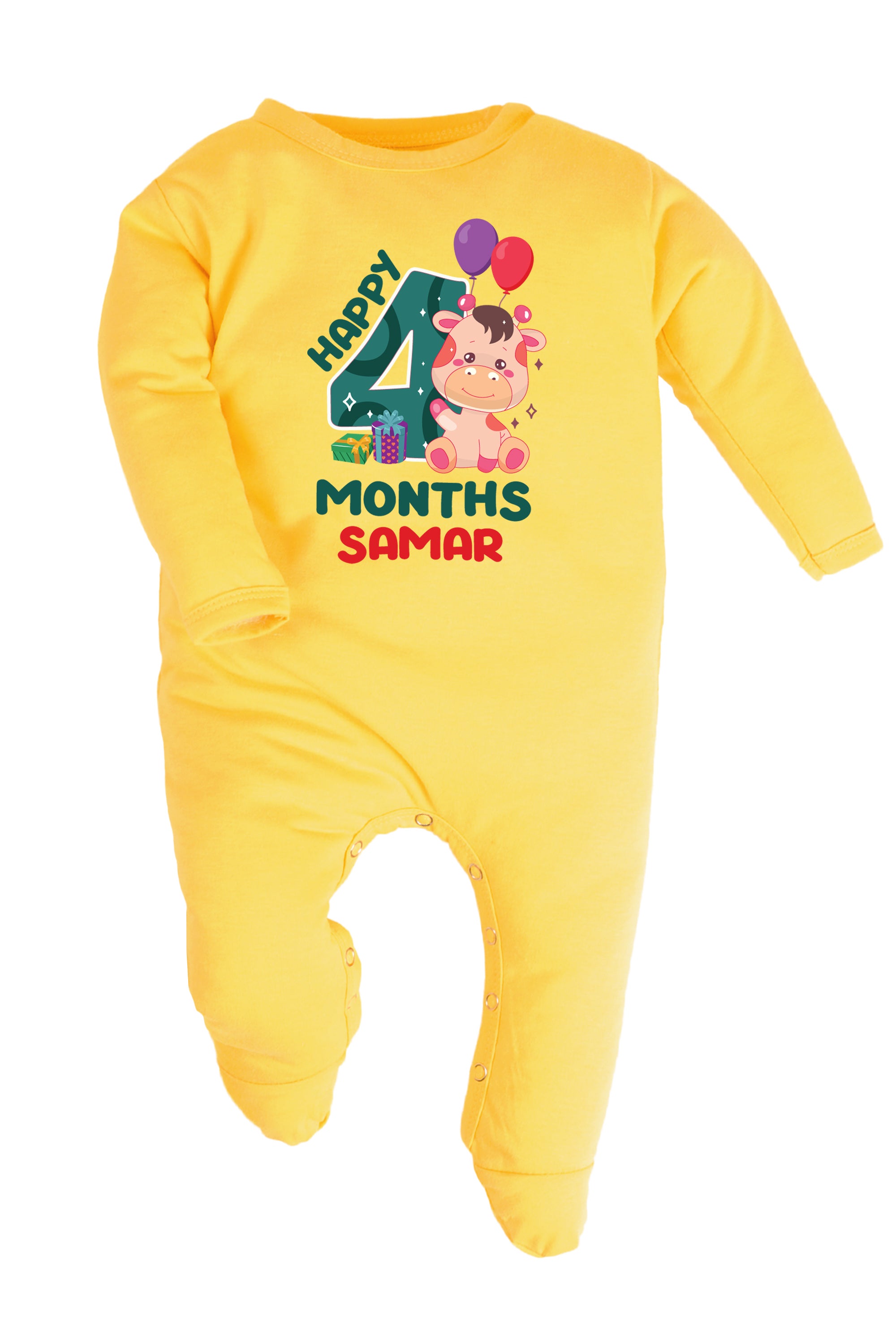 • Four Month Milestone Baby Romper | Onesies - Giraffe w/ Custom Name
