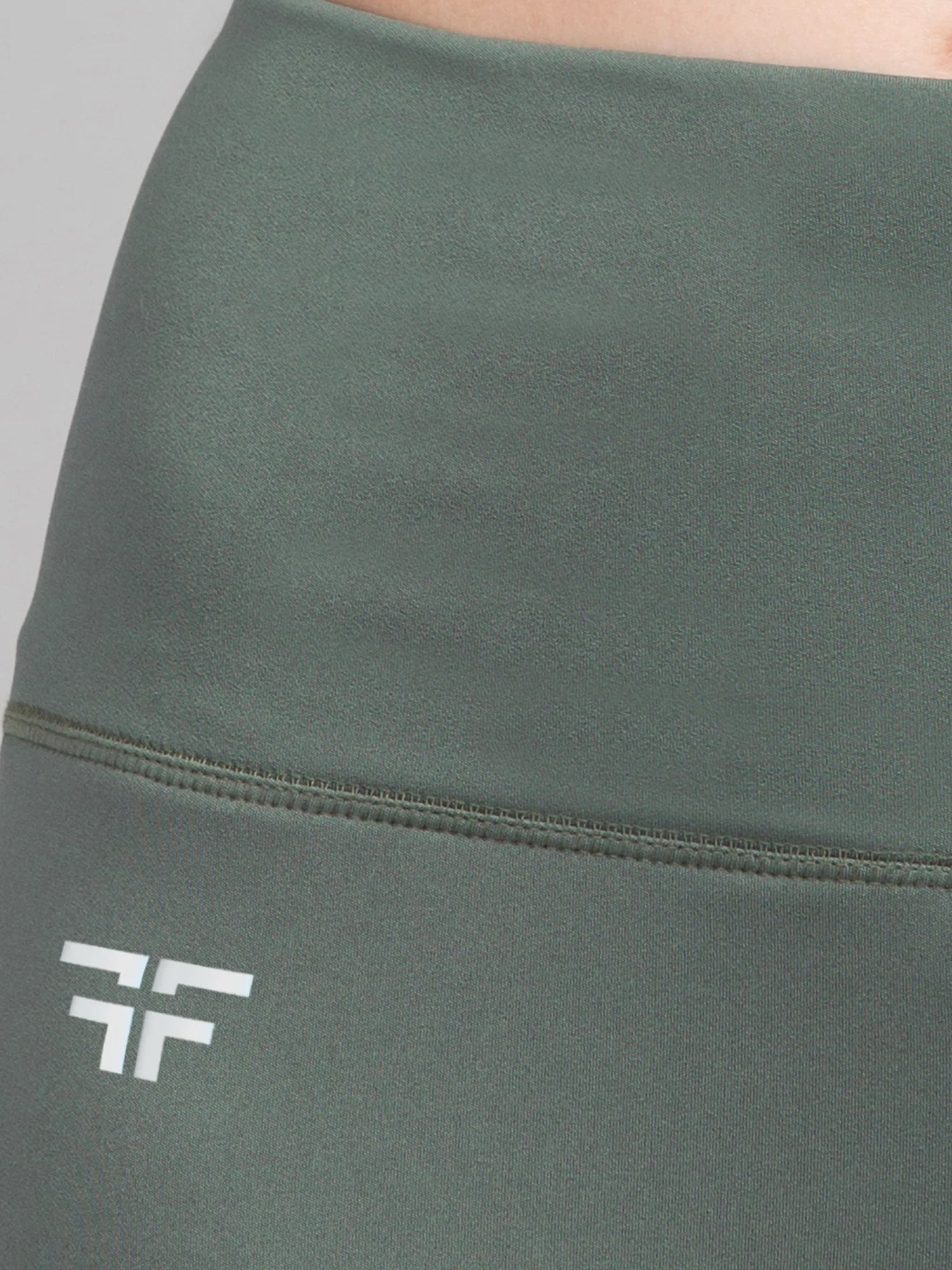 (Keywords: Mystic Sage Knee-Length Leggings, FflirtyGo, sage green leggings, 4-way stretch Lycra, fitness leggings)