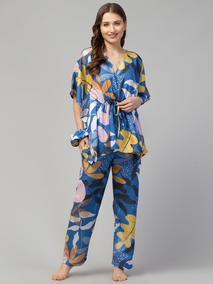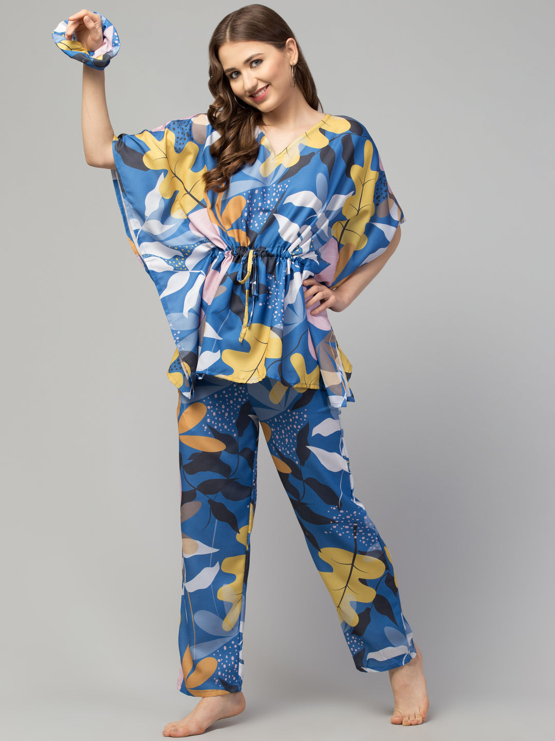 Don't wait to elevate your loungewear wardrobe with our Modern Garden FflirtyGo Kaftaan Set. Order yours today and experience the perfect balance of modern style, vivid colors, and unmatched comfort, complete with a free matching scrunchie.