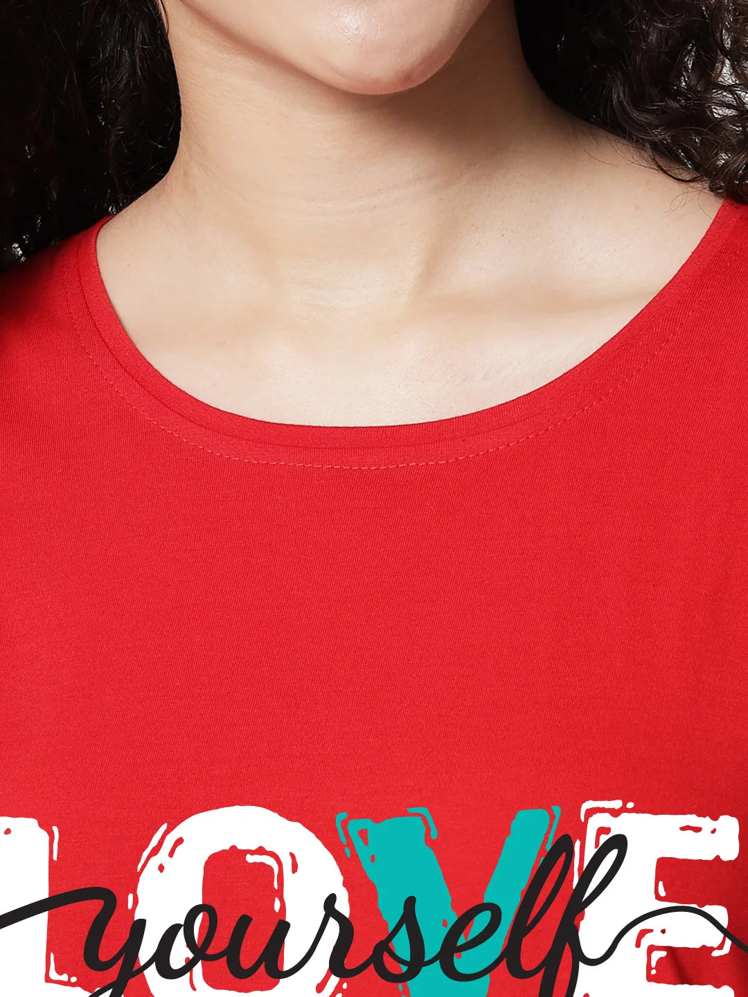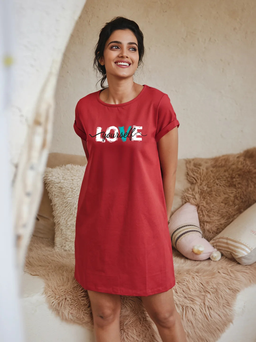 Spread love and positivity with our 'Love Yourself' print. This empowering design features the message 'Love Yourself' in bold letters, set against a vibrant and colorful background. Made with high-quality materials and available in a range of sizes, this garment is perfect for anyone who wants to embrace self-love and acceptance. Whether you wear it to a yoga class or out for a casual day with friends, our 'Love Yourself' print is sure to make a statement and remind you to always be kind to yourself and others.