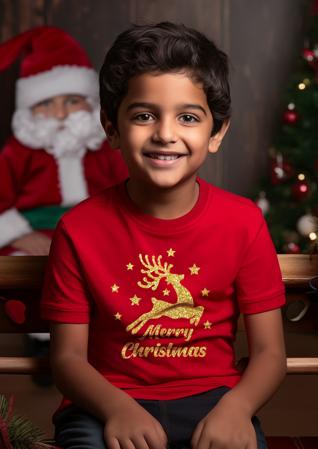 • Merry Christmas Glitter Kids T Shirt