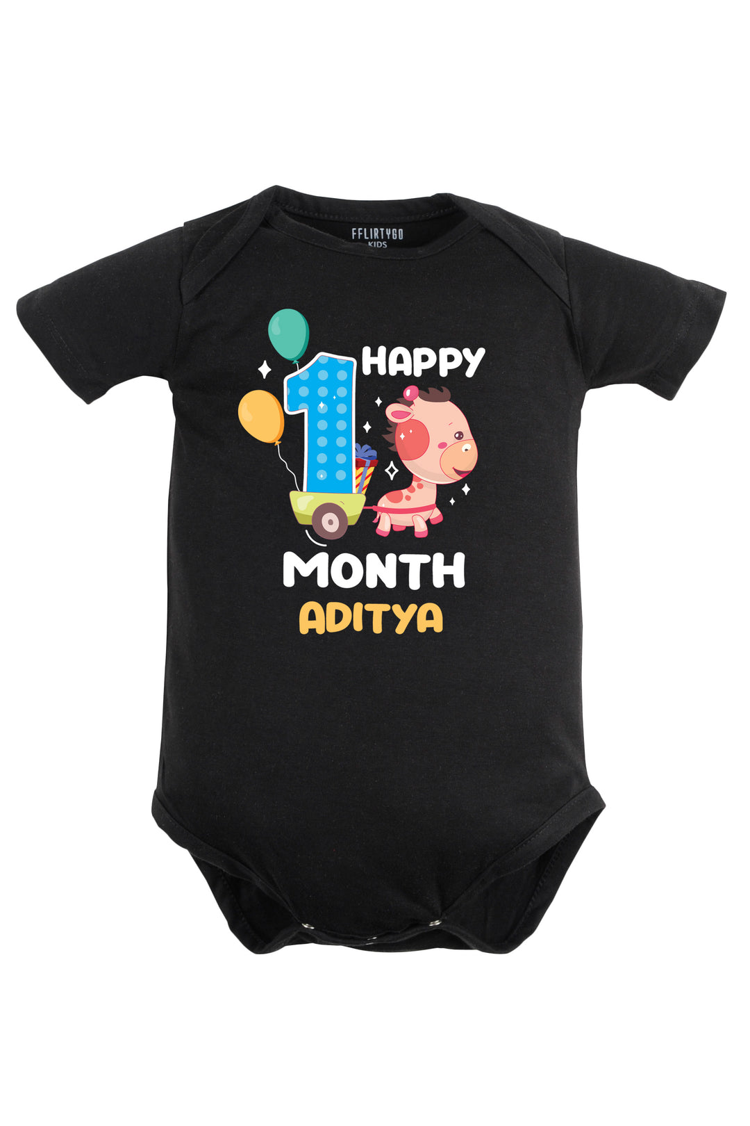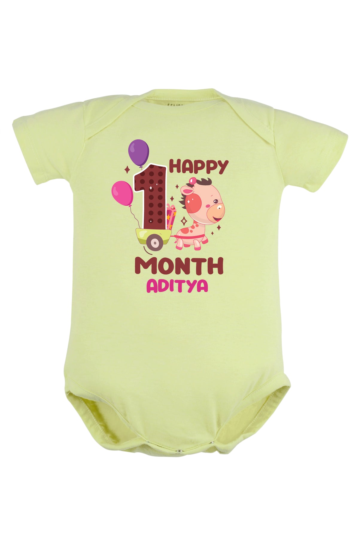 One Month Milestone Baby Romper | Onesies - Giraffe w/ Custom Name