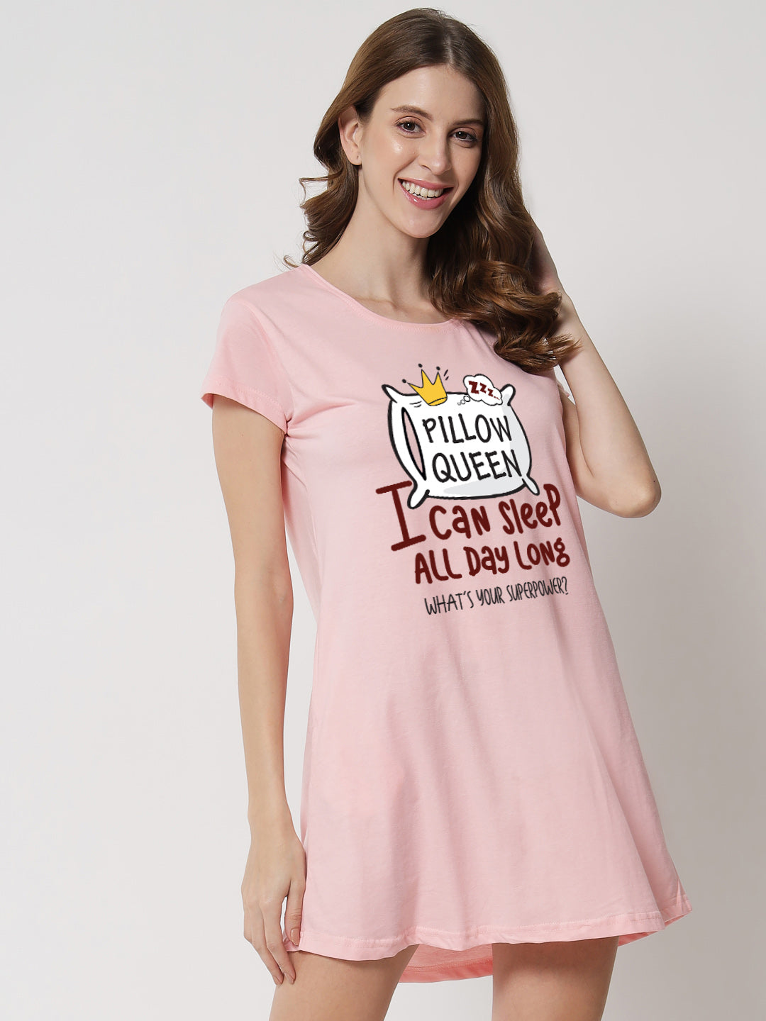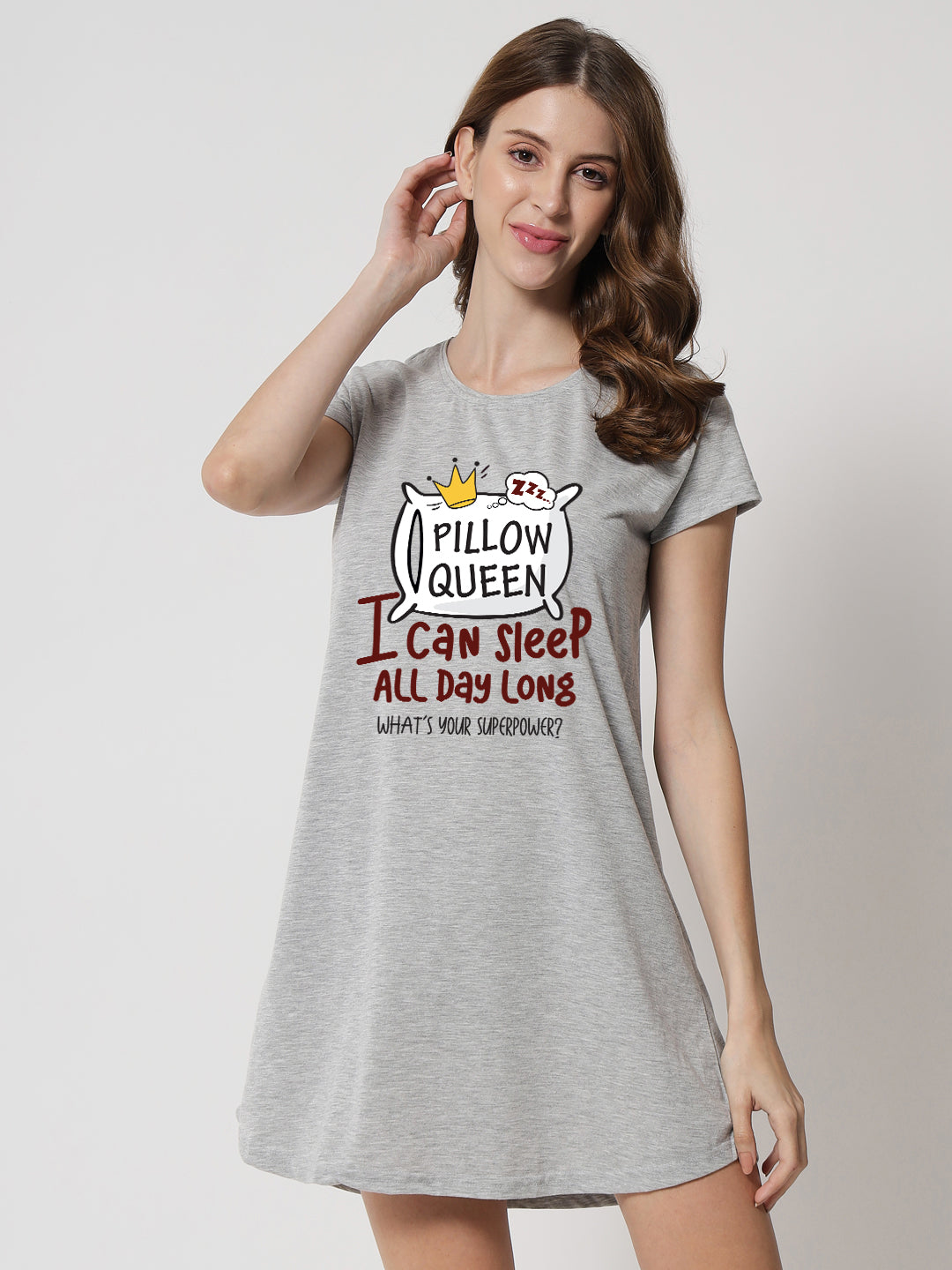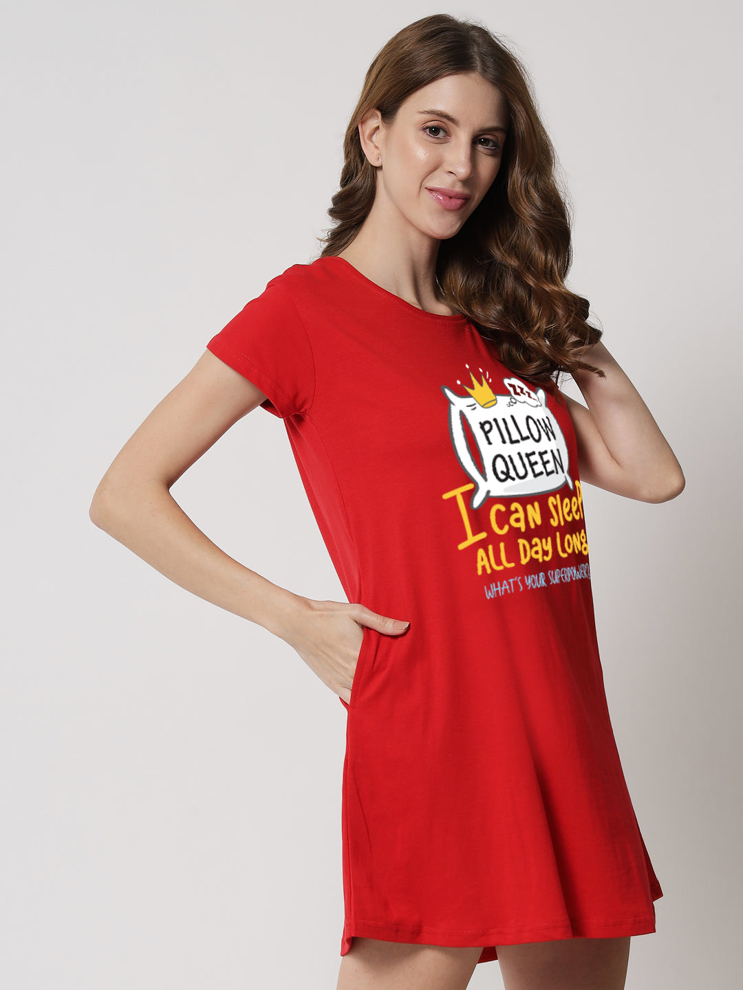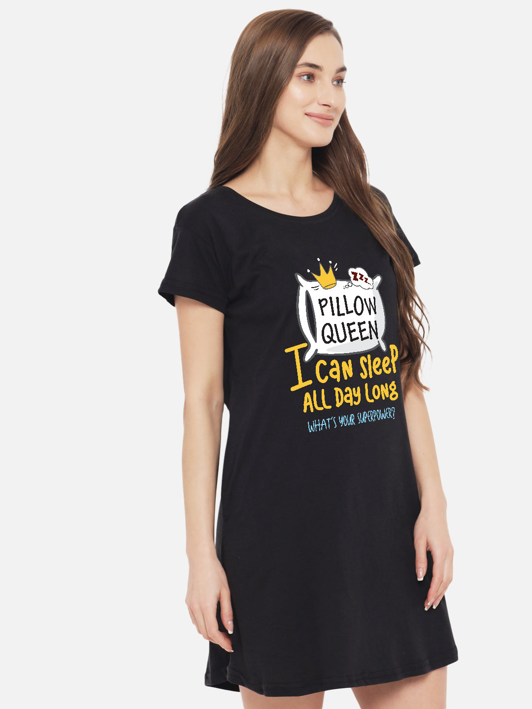 This ‘Pillow queen’ printed t-shirt dress for women and girls will be a perfect addition to the wardrobe. It has a comfortable fit perfect for daily wear. Made from soft and breathable cotton fabric ensuring your utmost comfort and a well tailored design making it suitable for any occasion.
