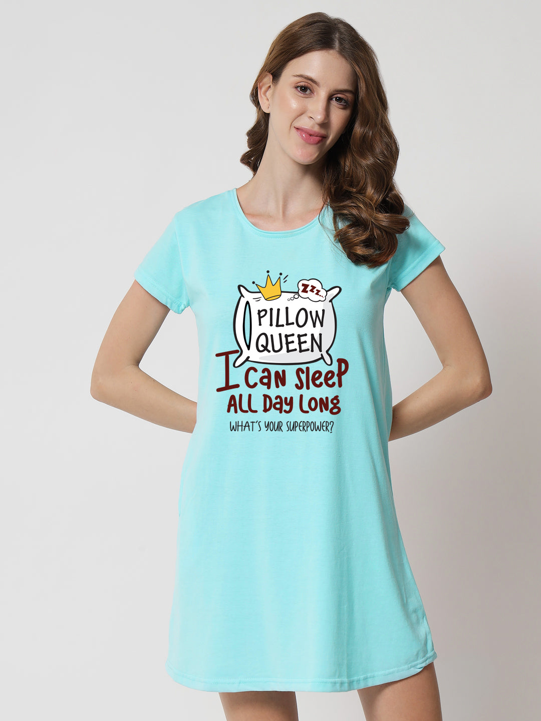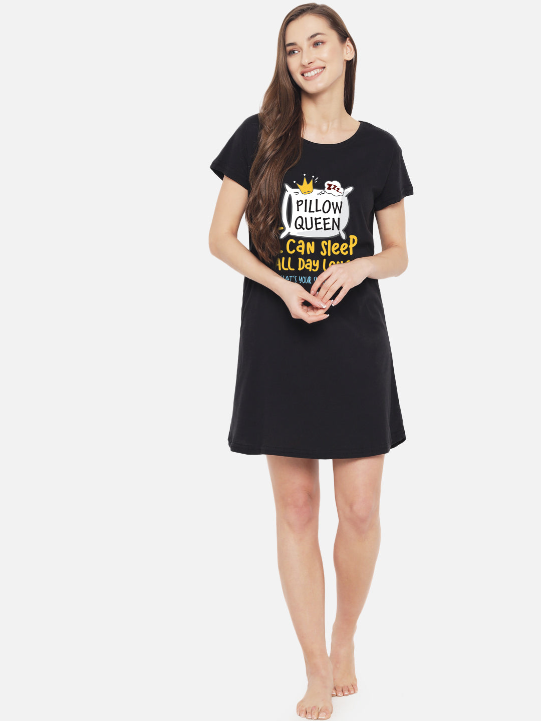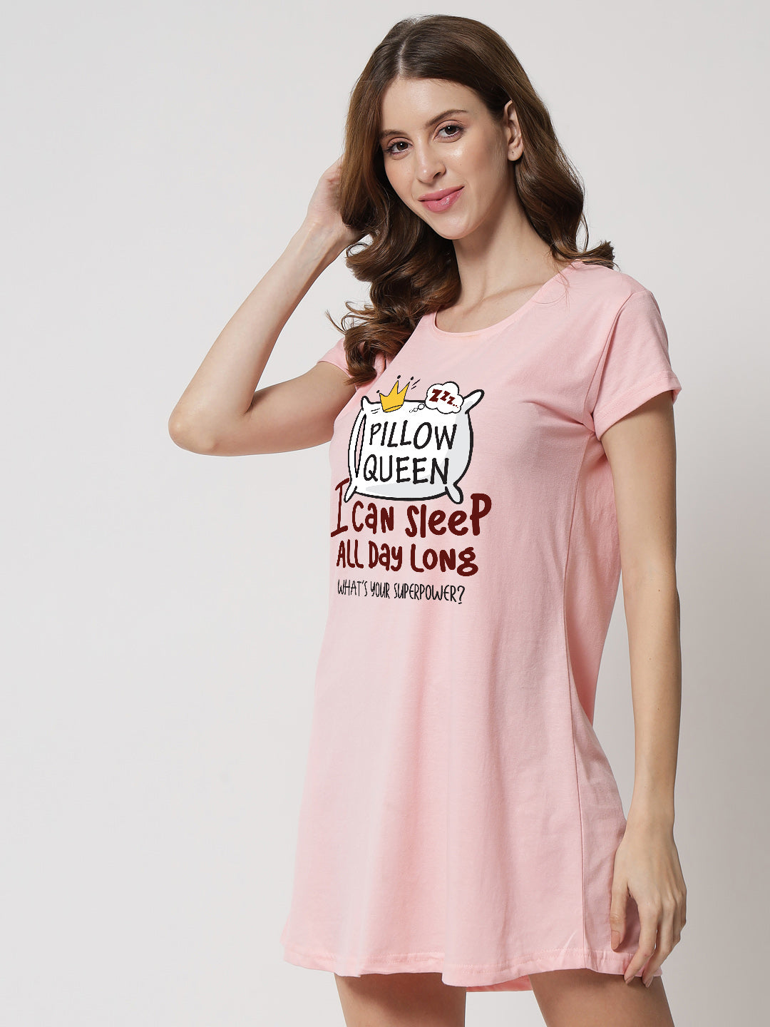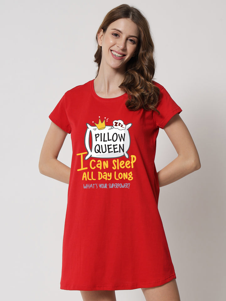 This ‘Pillow queen’ printed t-shirt dress for women and girls will be a perfect addition to the wardrobe. It has a comfortable fit perfect for daily wear. Made from soft and breathable cotton fabric ensuring your utmost comfort and a well tailored design making it suitable for any occasion.