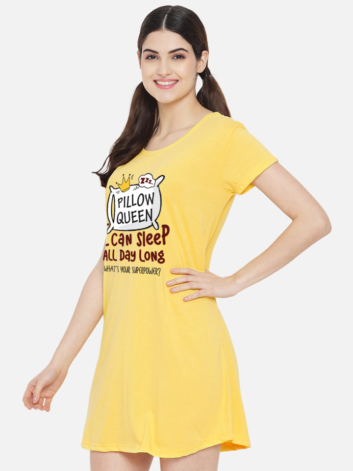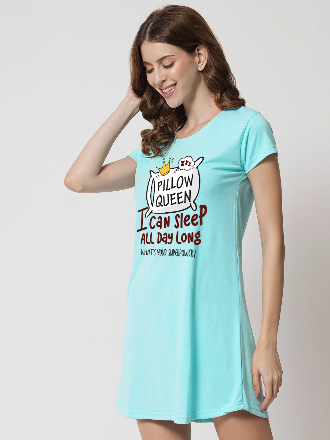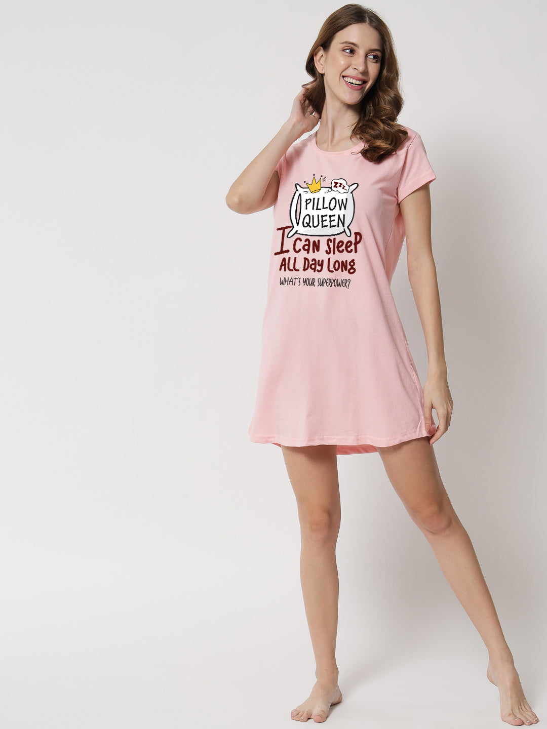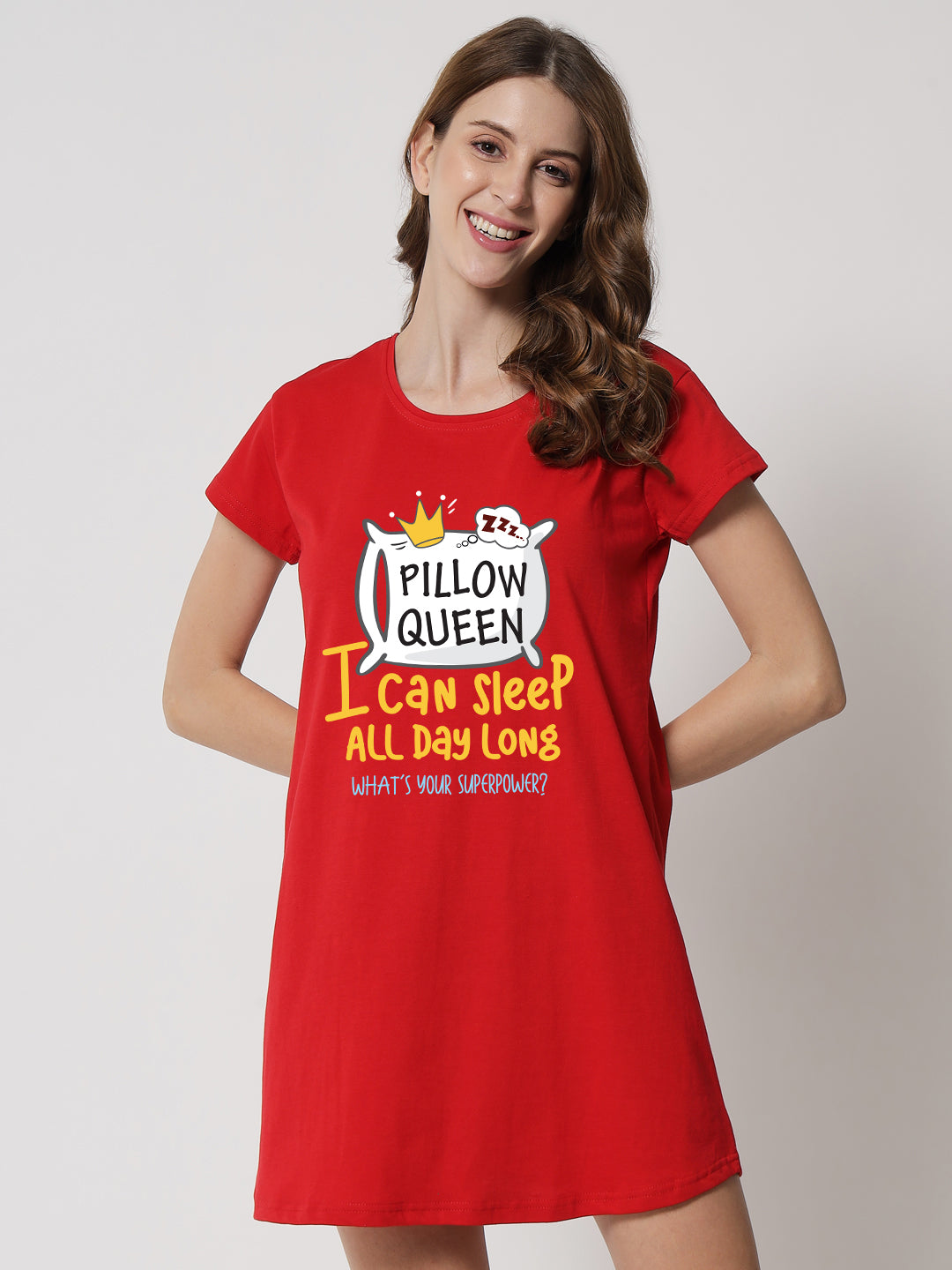 This ‘Pillow queen’ printed t-shirt dress for women and girls will be a perfect addition to the wardrobe. It has a comfortable fit perfect for daily wear. Made from soft and breathable cotton fabric ensuring your utmost comfort and a well tailored design making it suitable for any occasion.
