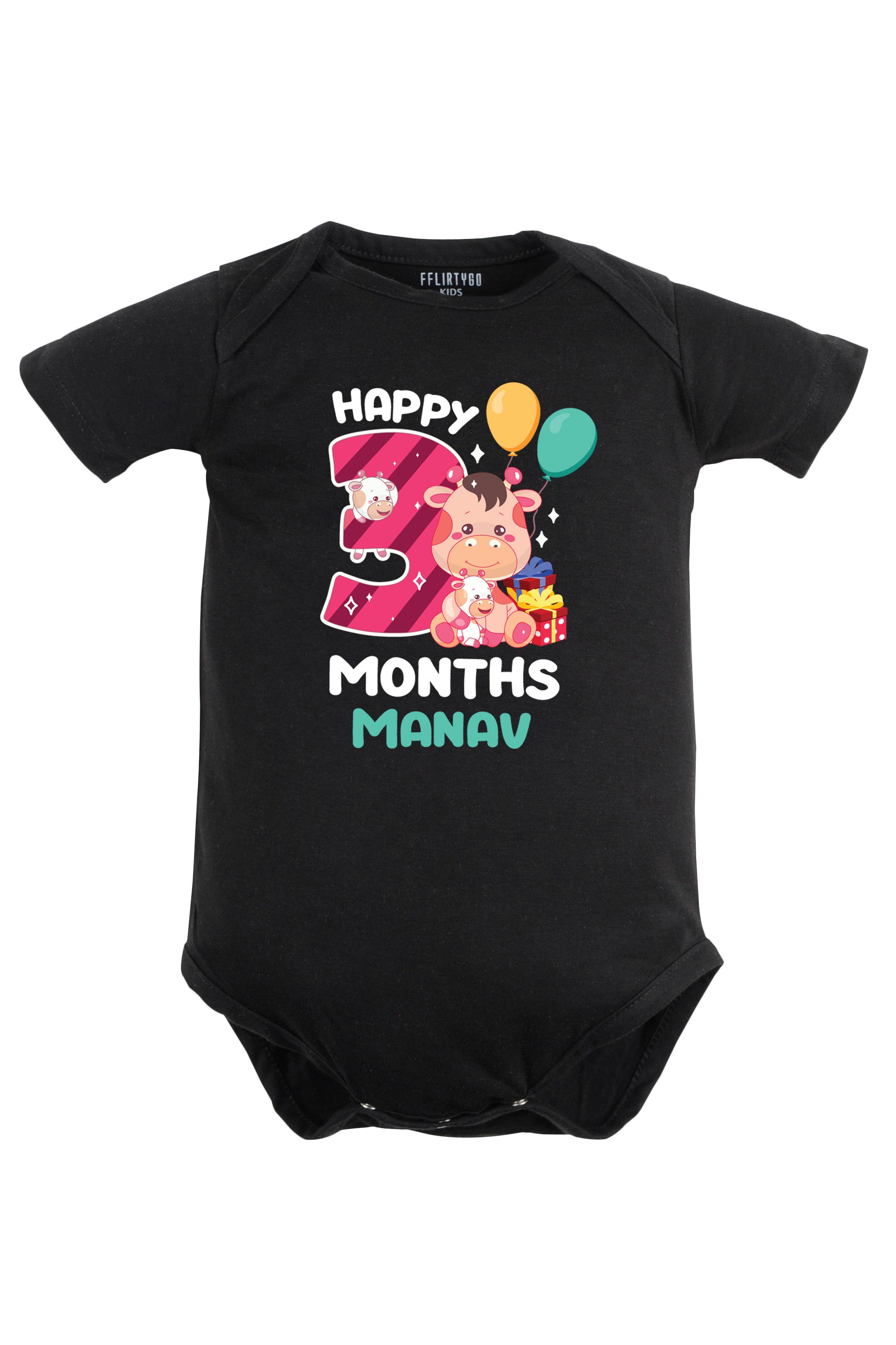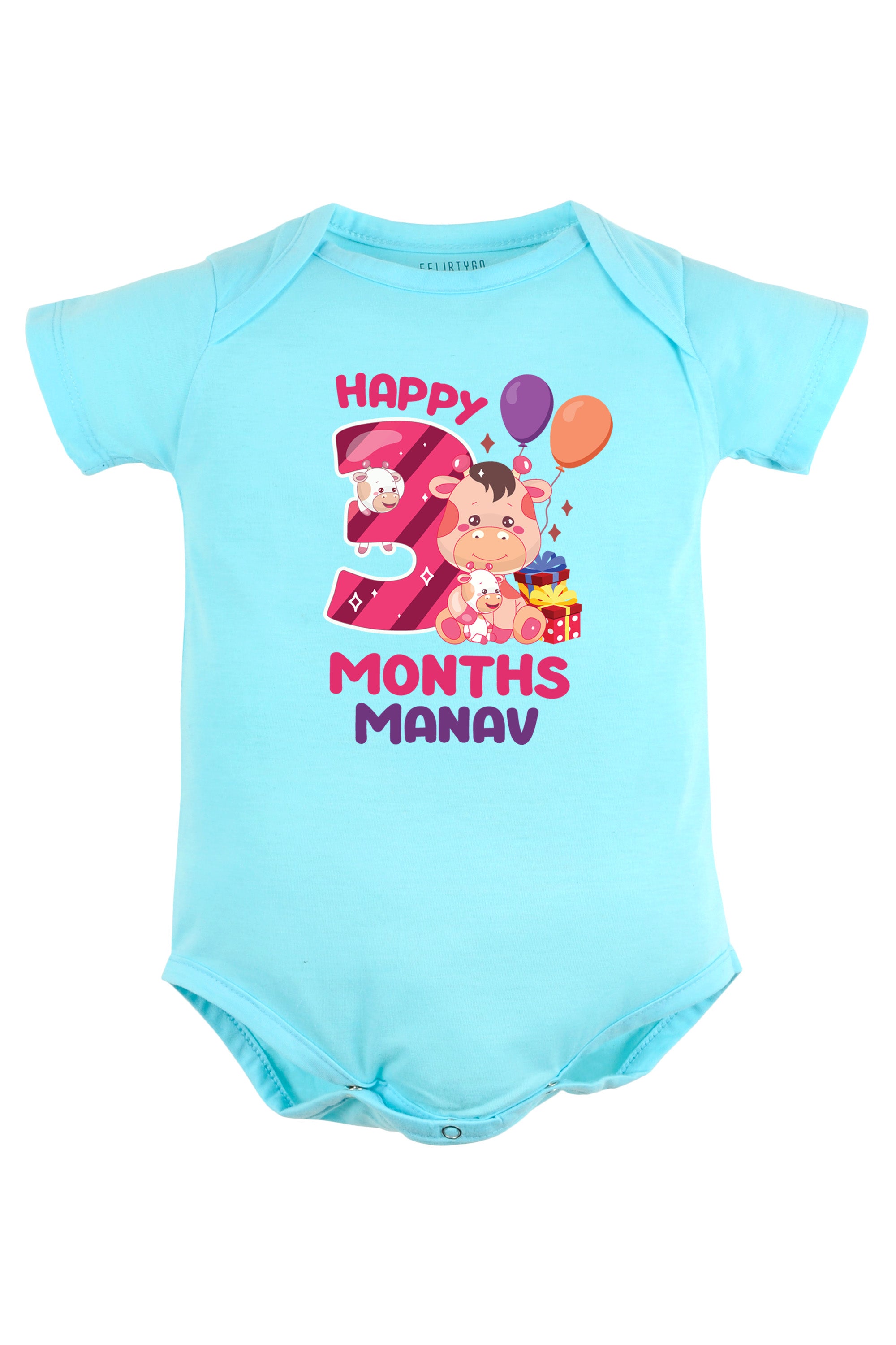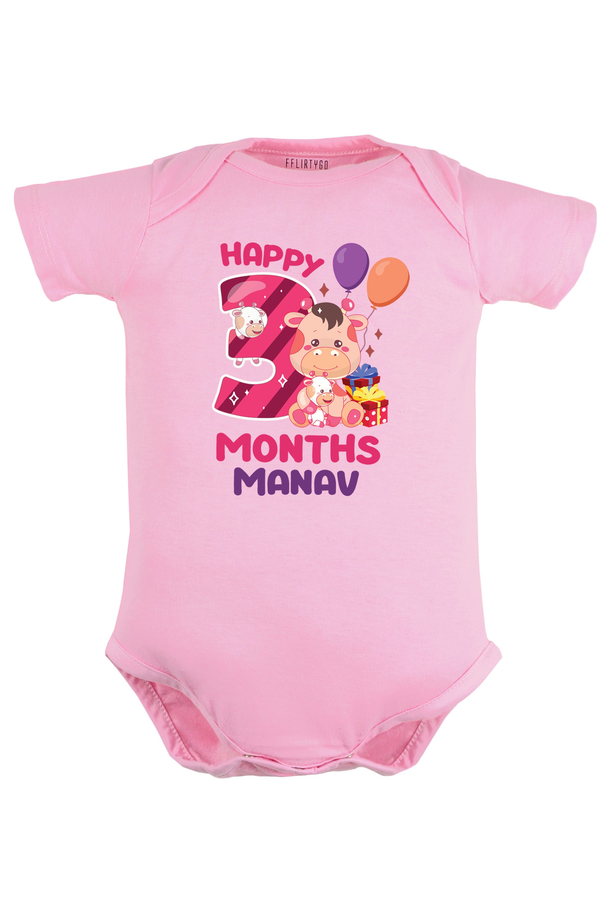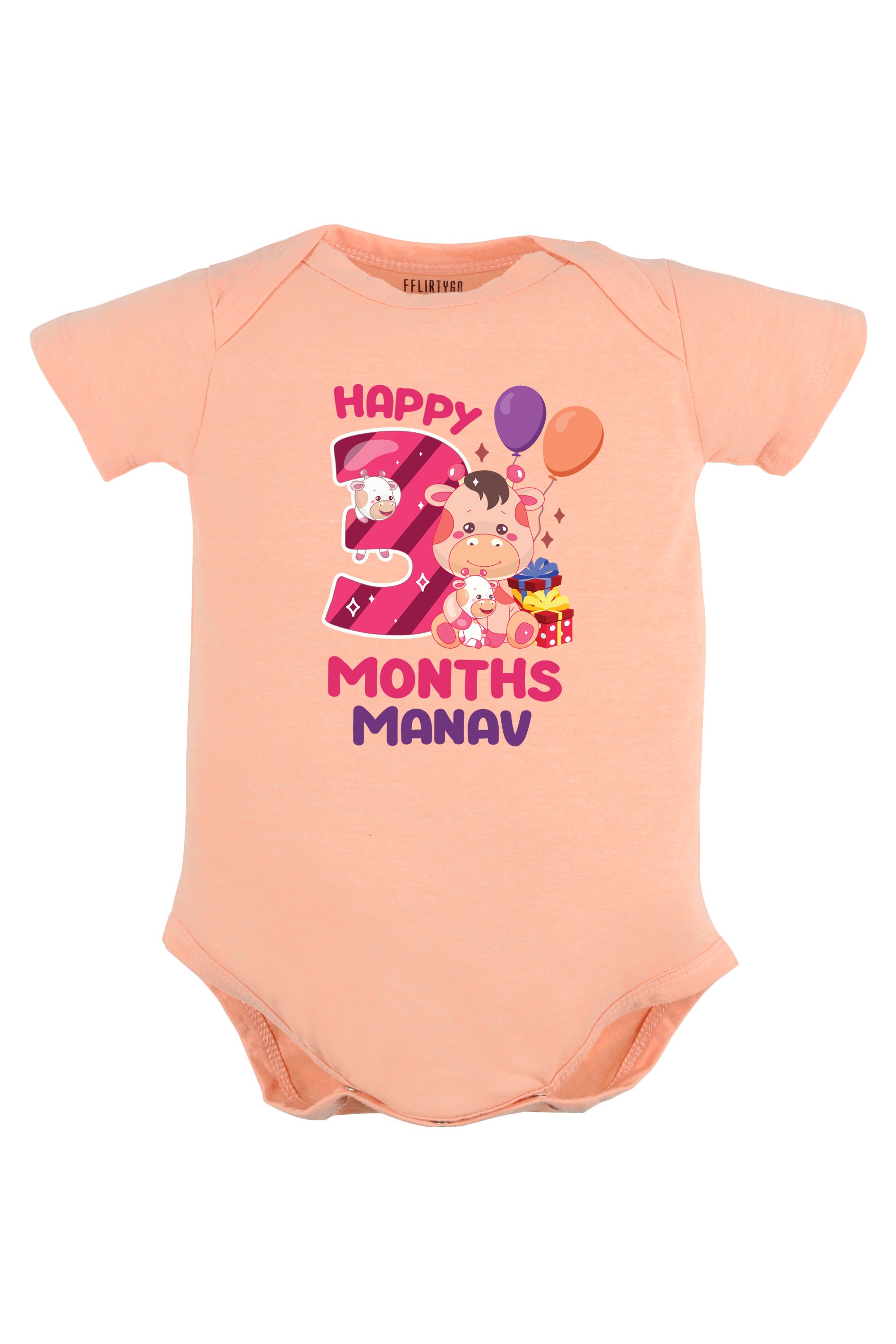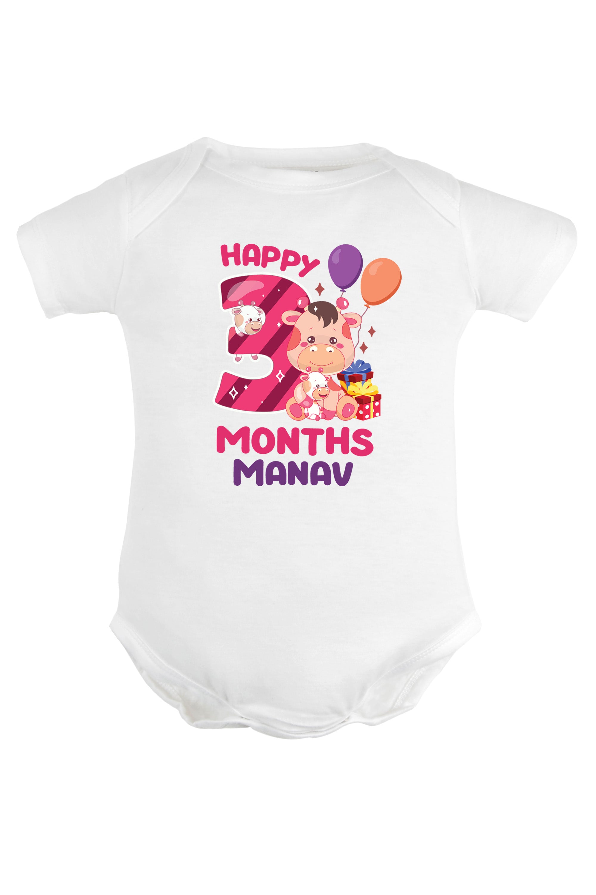 • Three Months Milestone Baby Romper | Onesies - Giraffe w/ Custom Name