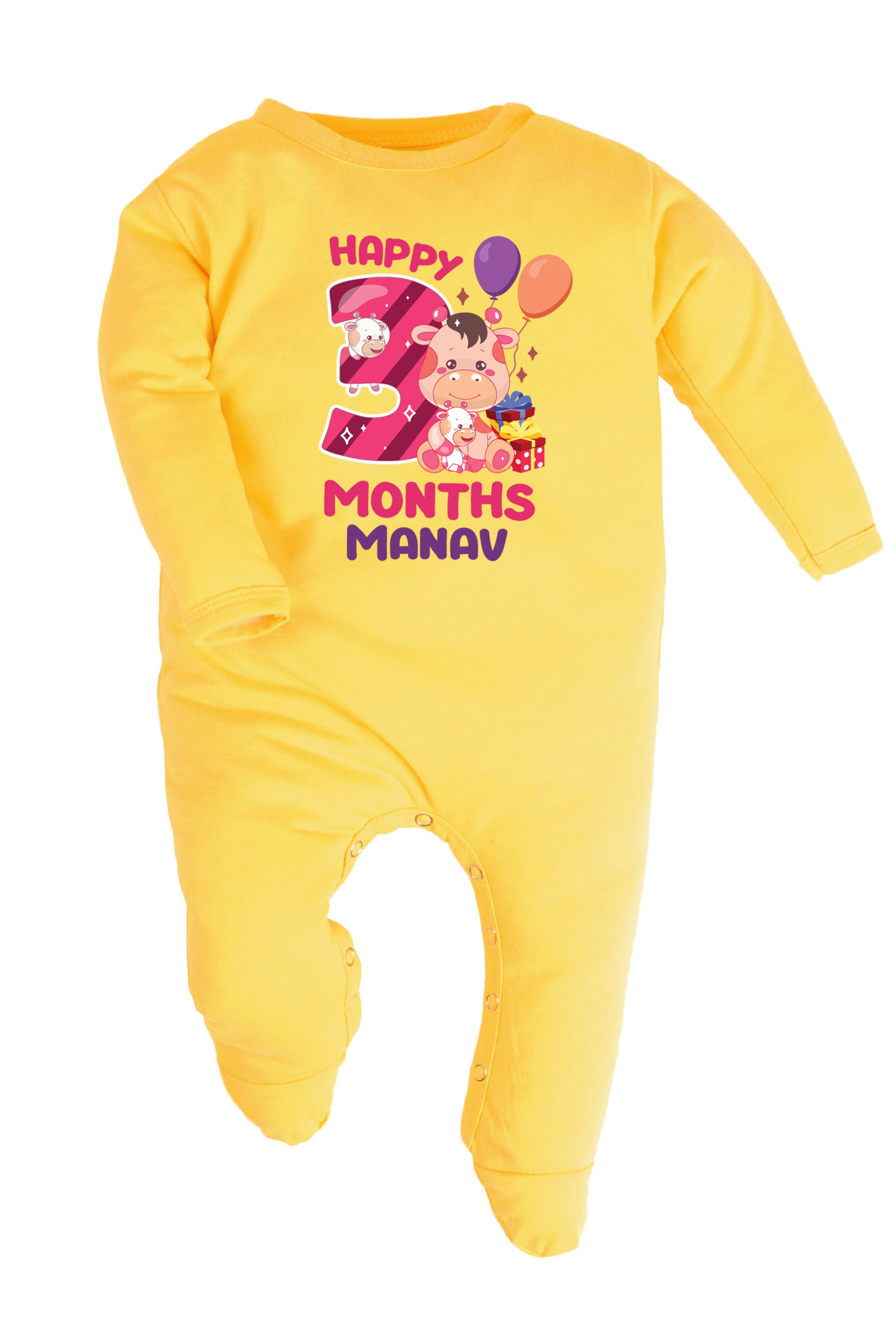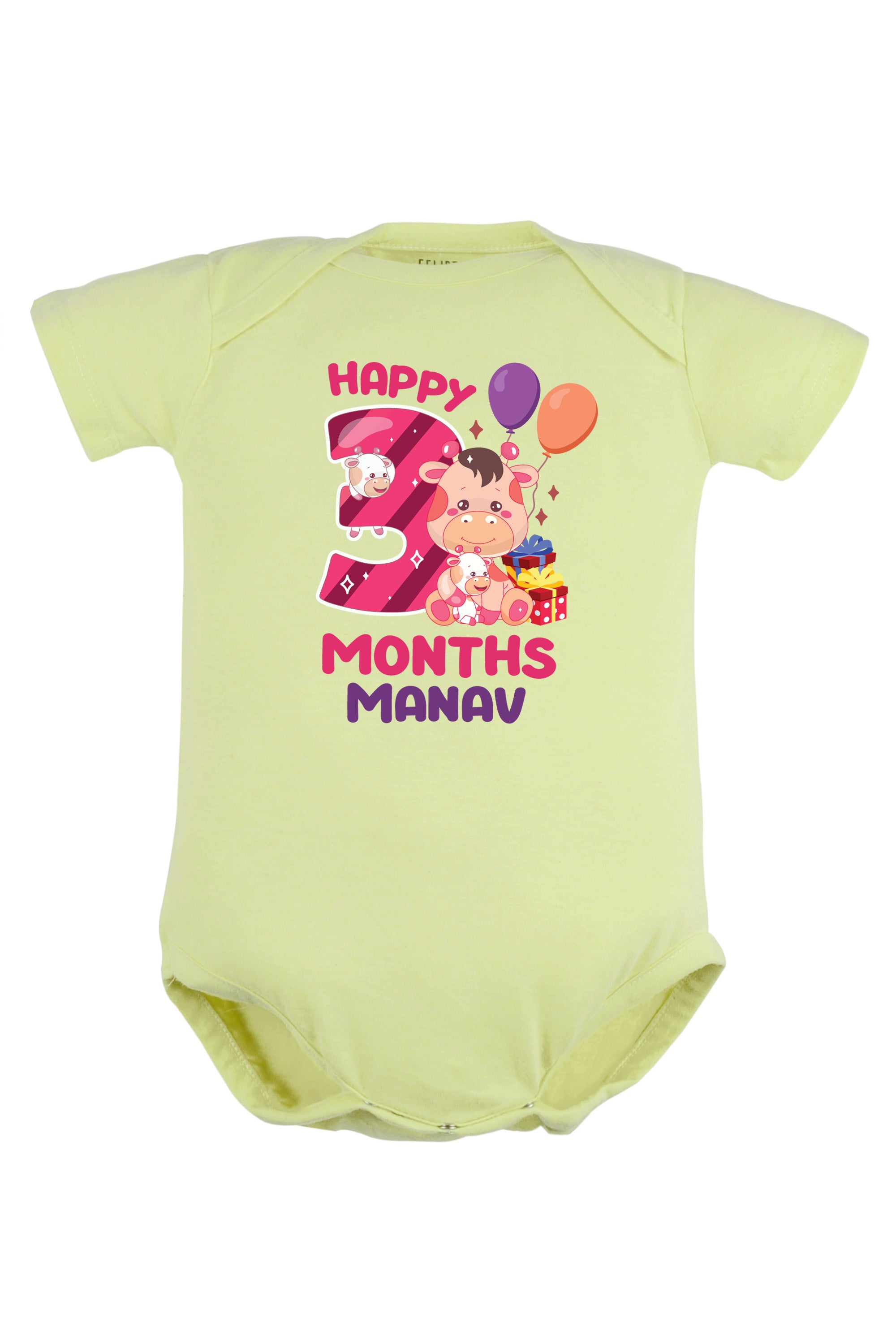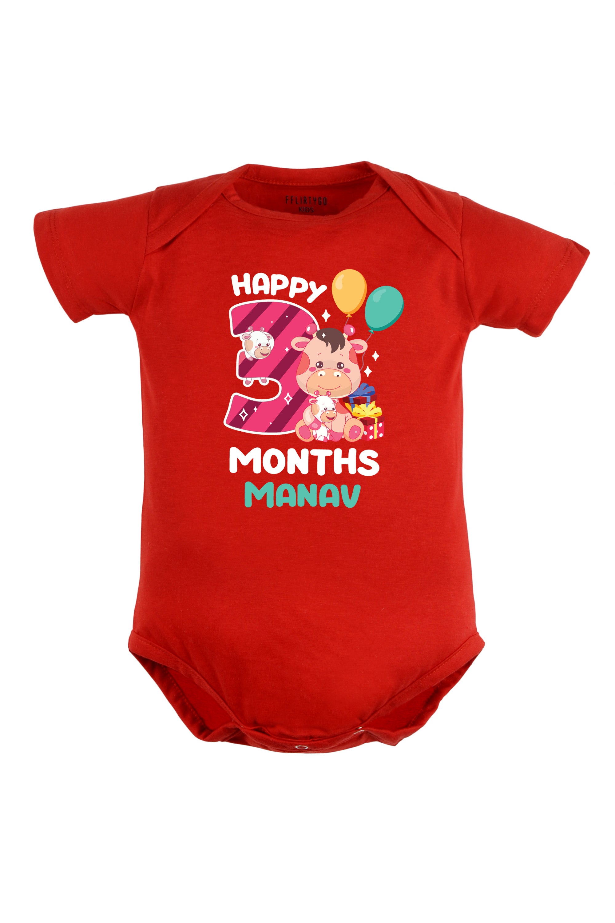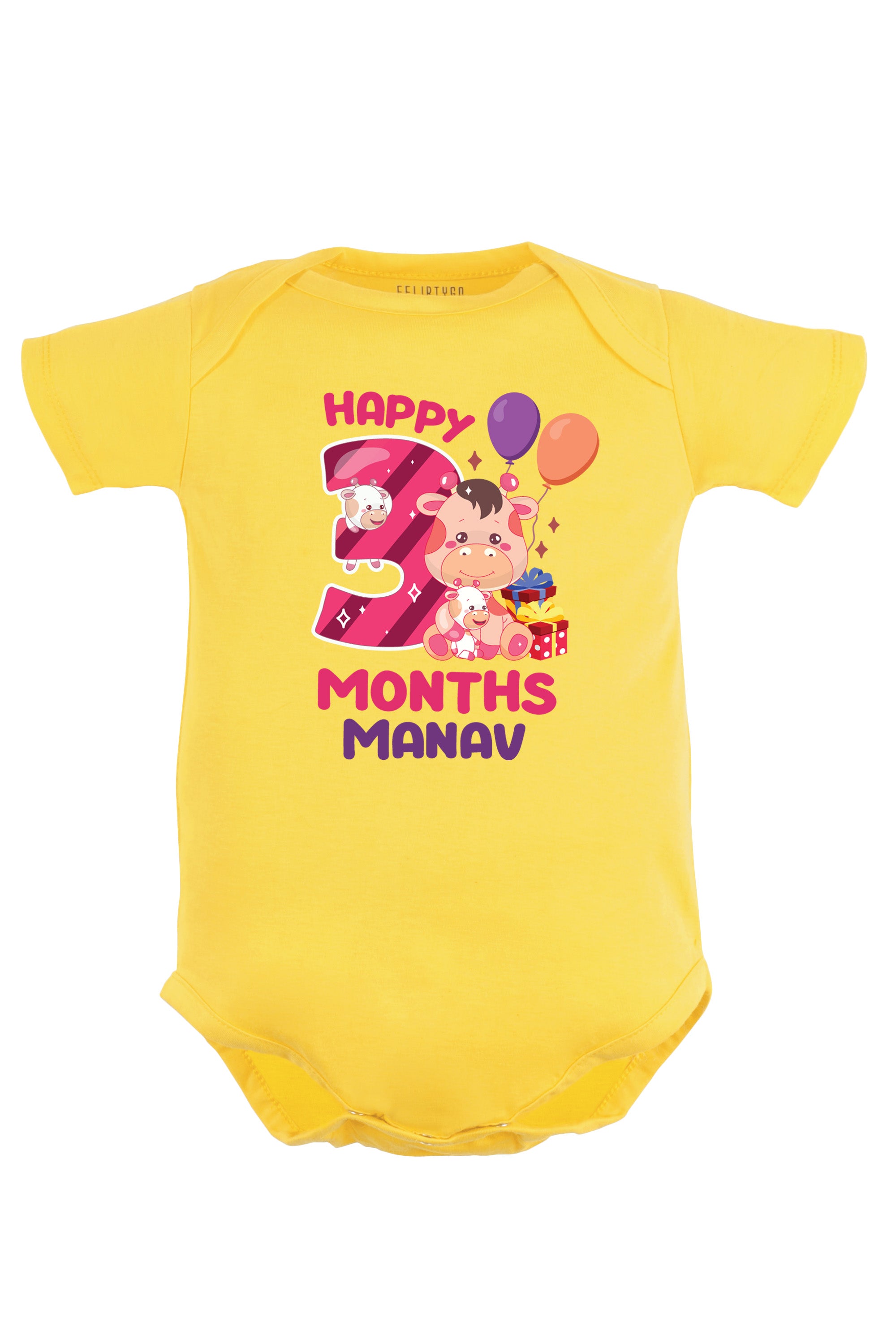 • Three Months Milestone Baby Romper | Onesies - Giraffe w/ Custom Name
