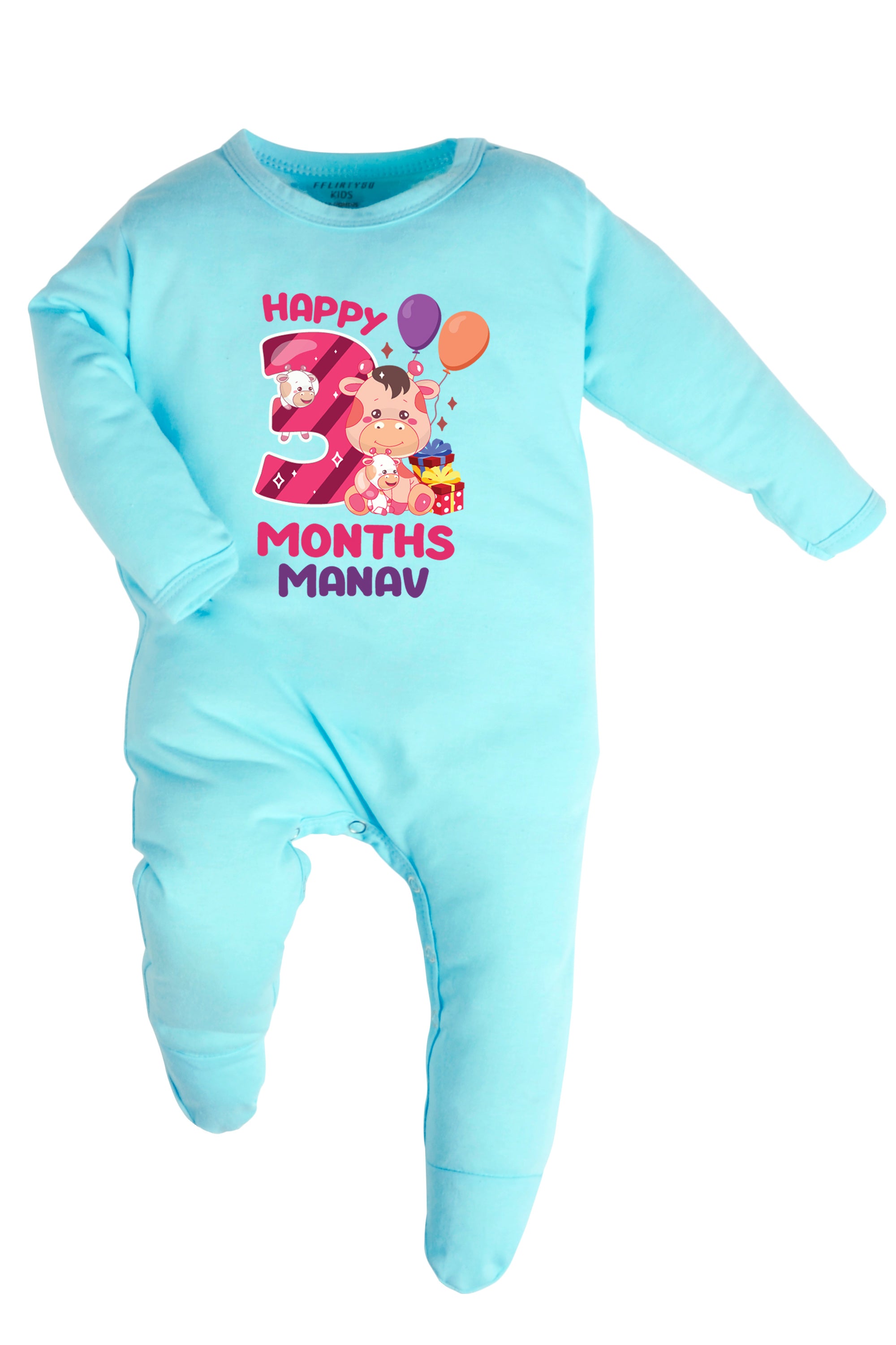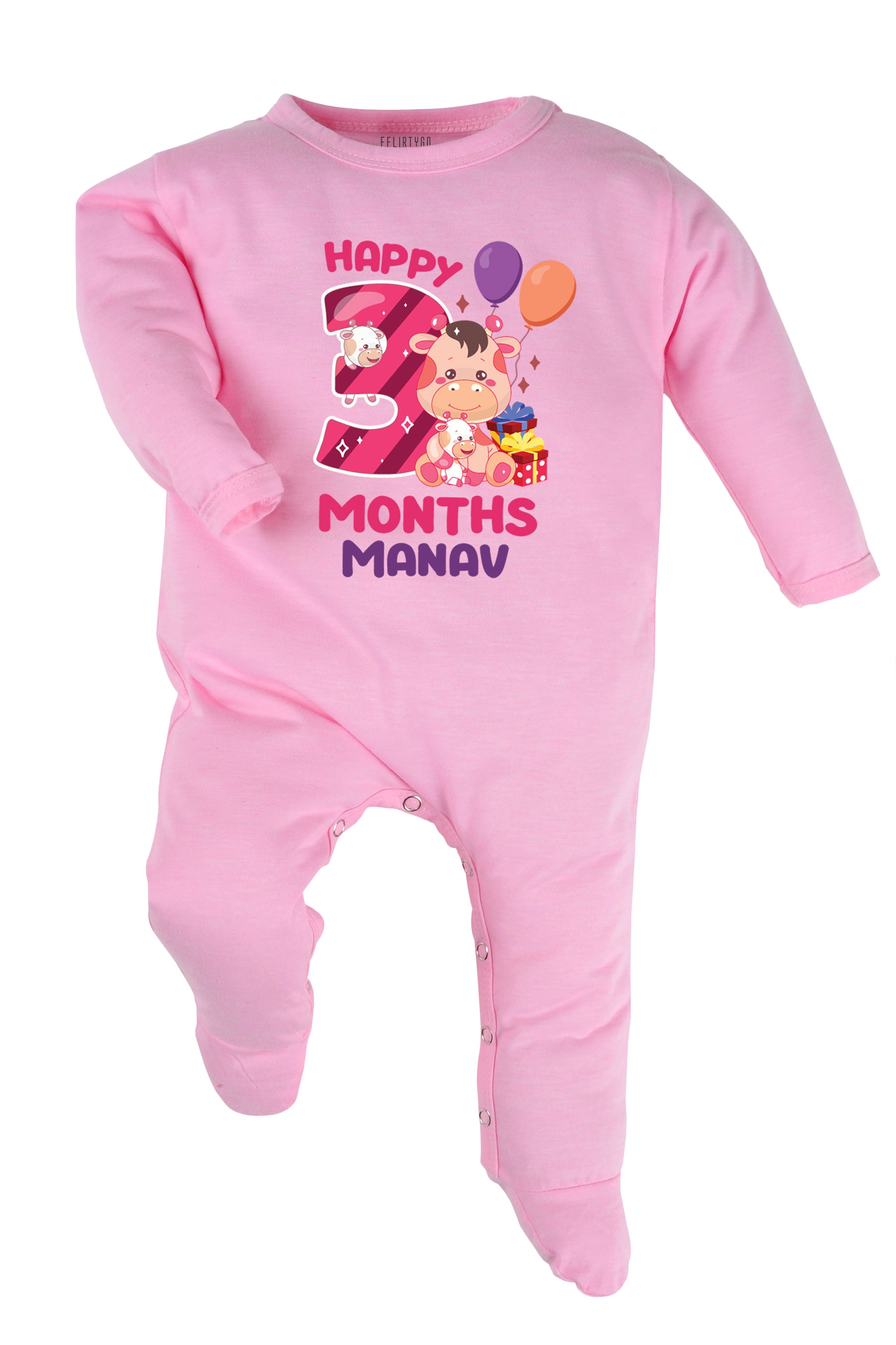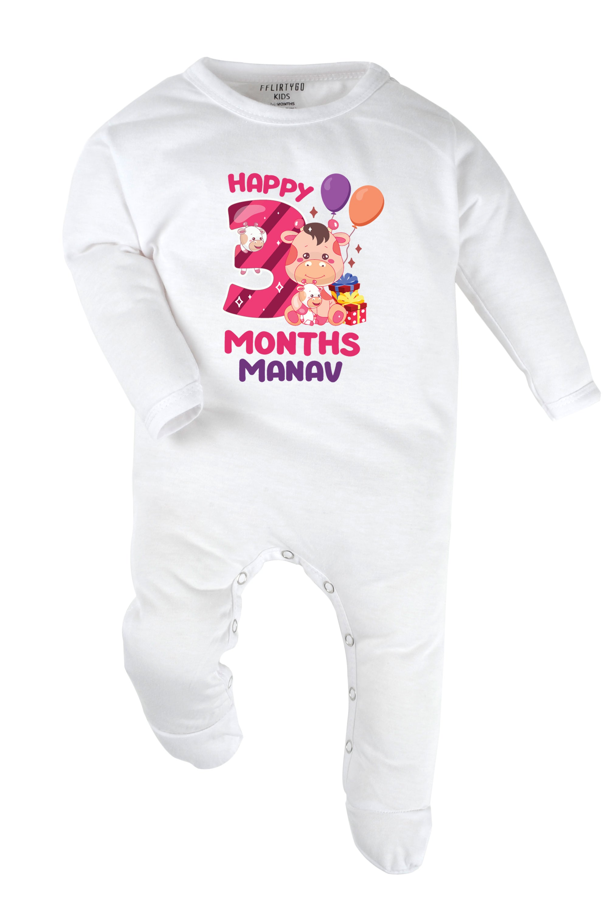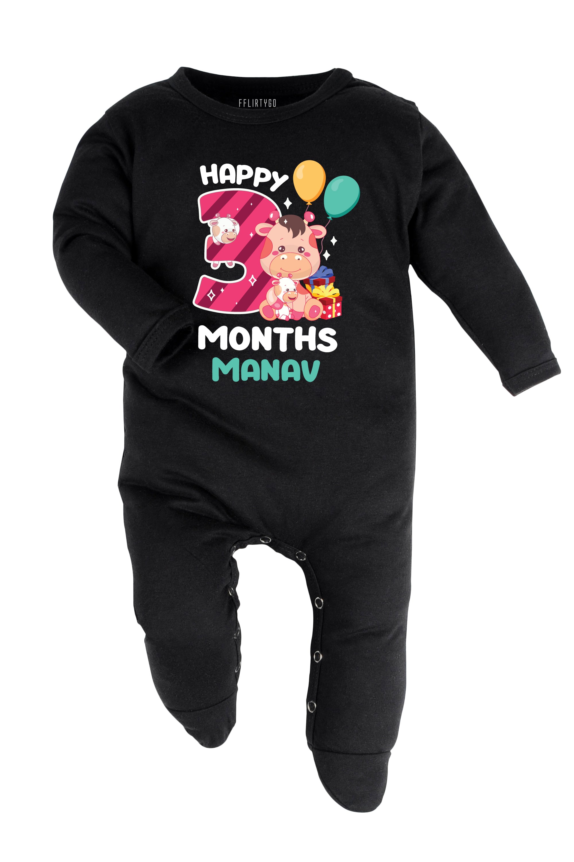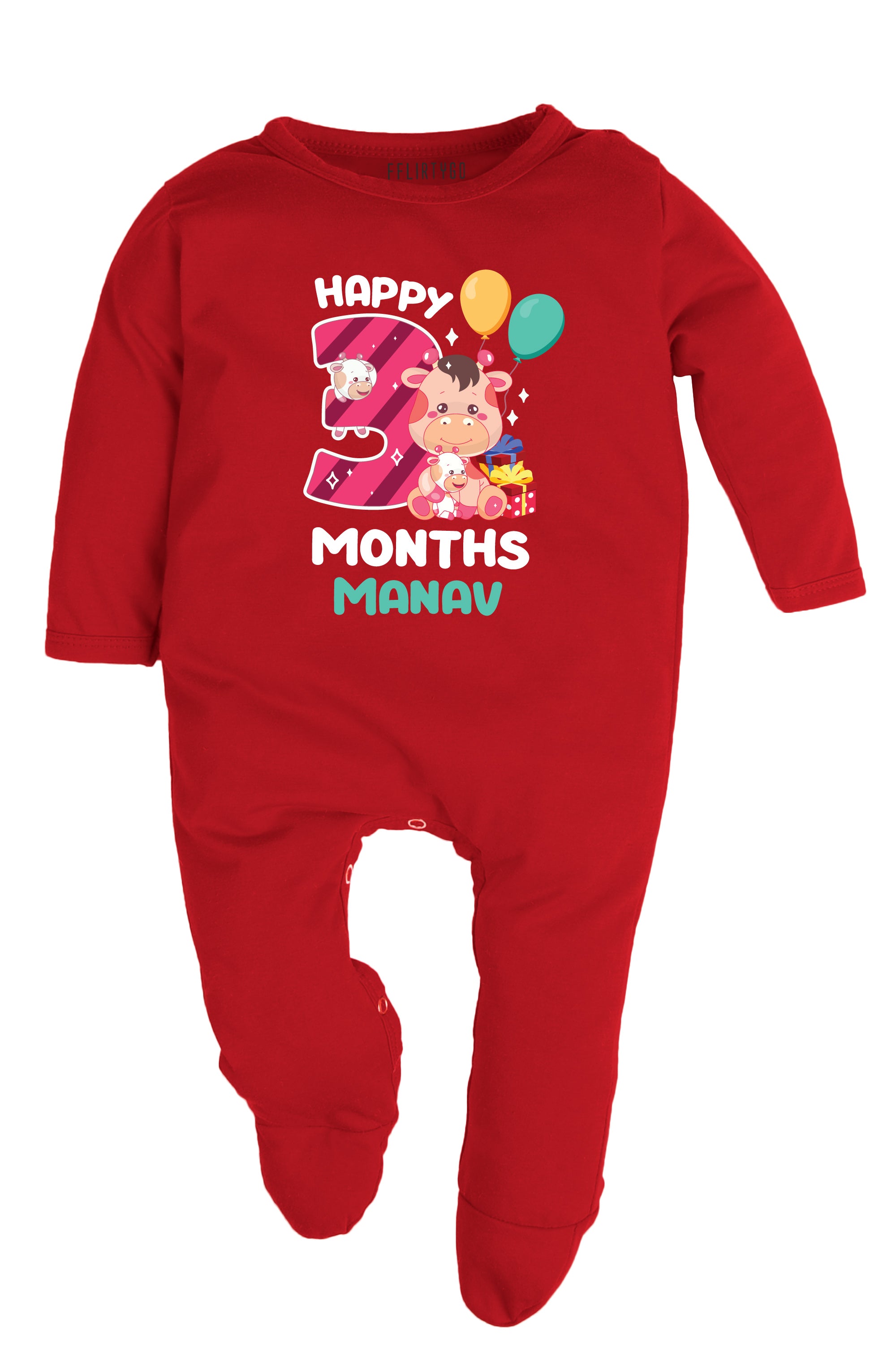 • Three Months Milestone Baby Romper | Onesies - Giraffe w/ Custom Name