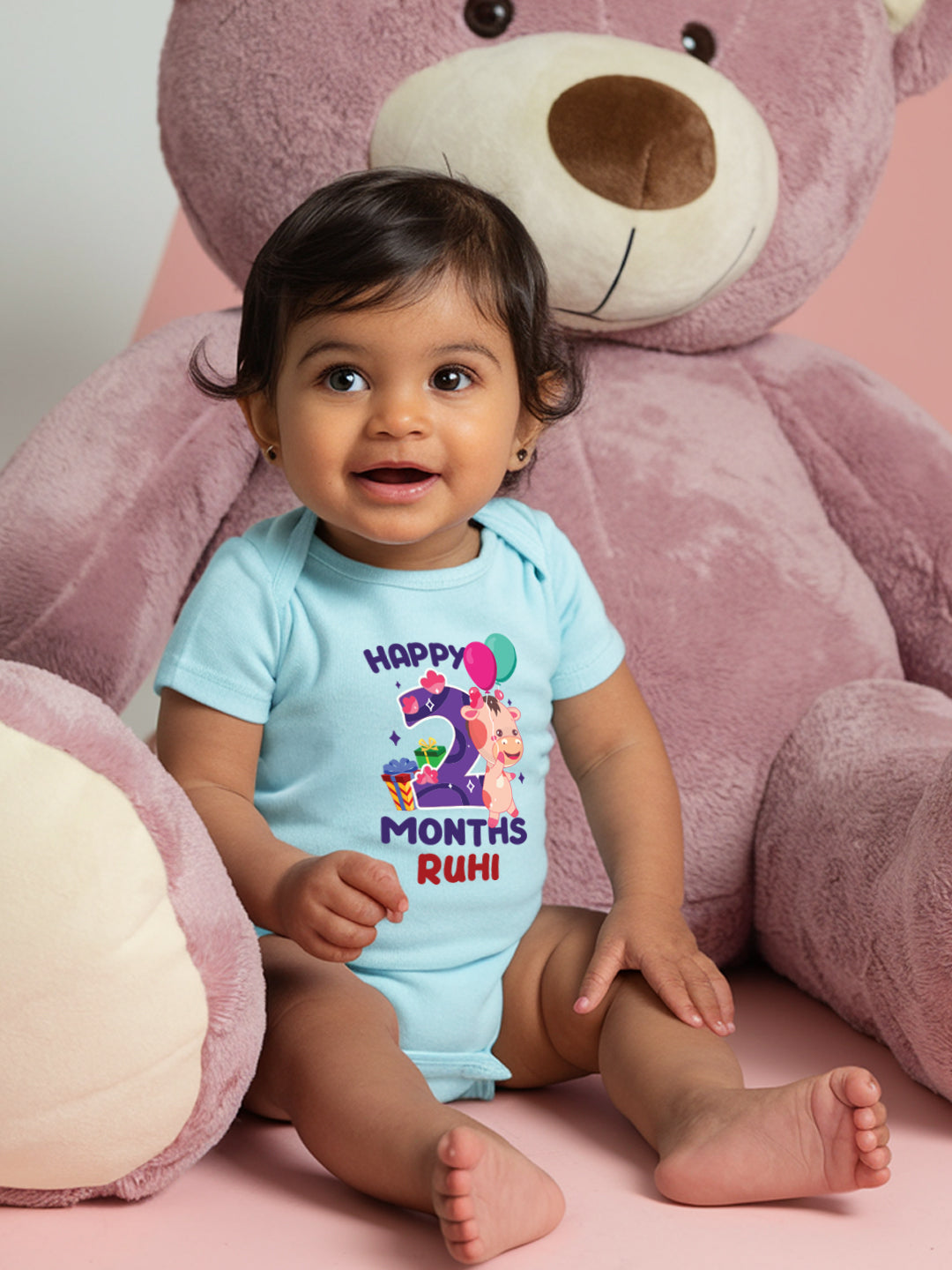 Two Month Milestone Baby Romper | Onesies - Giraffe w/ Custom name loading