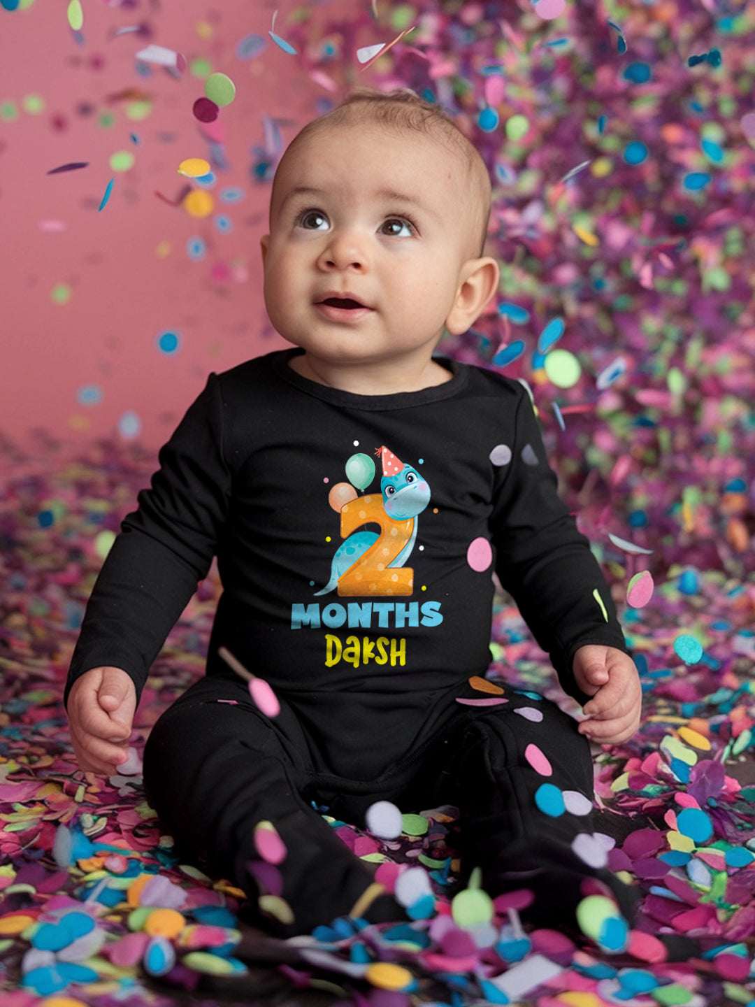 Two Month Milestone Baby Romper | Onesies - Dino w/ Custom name