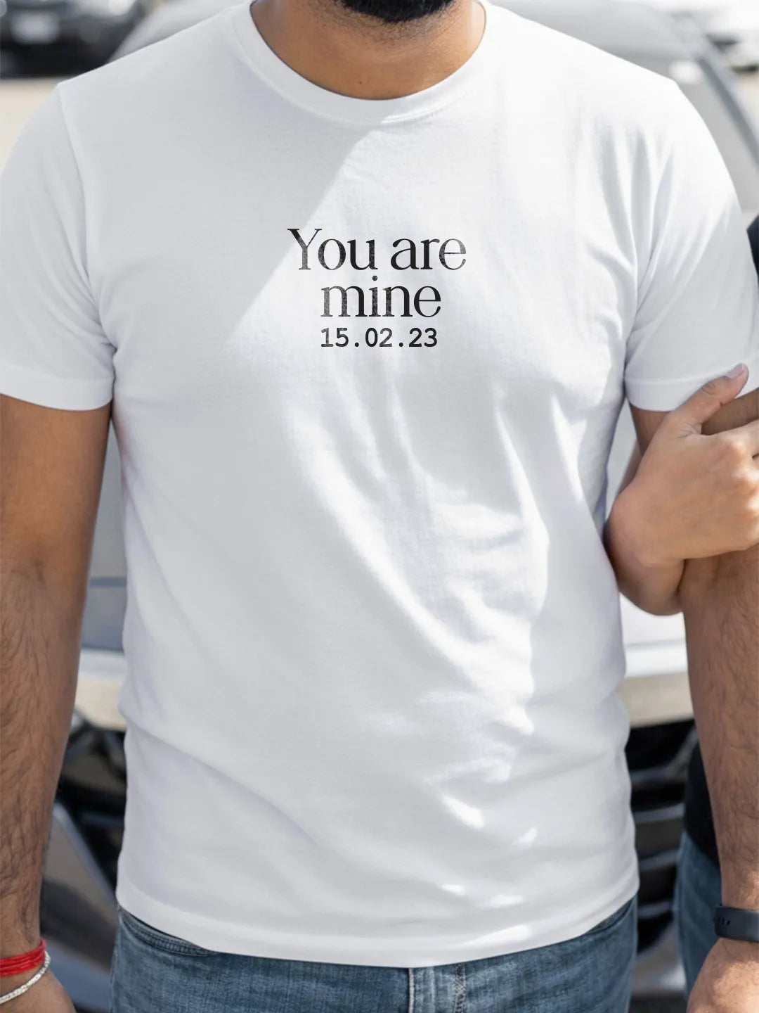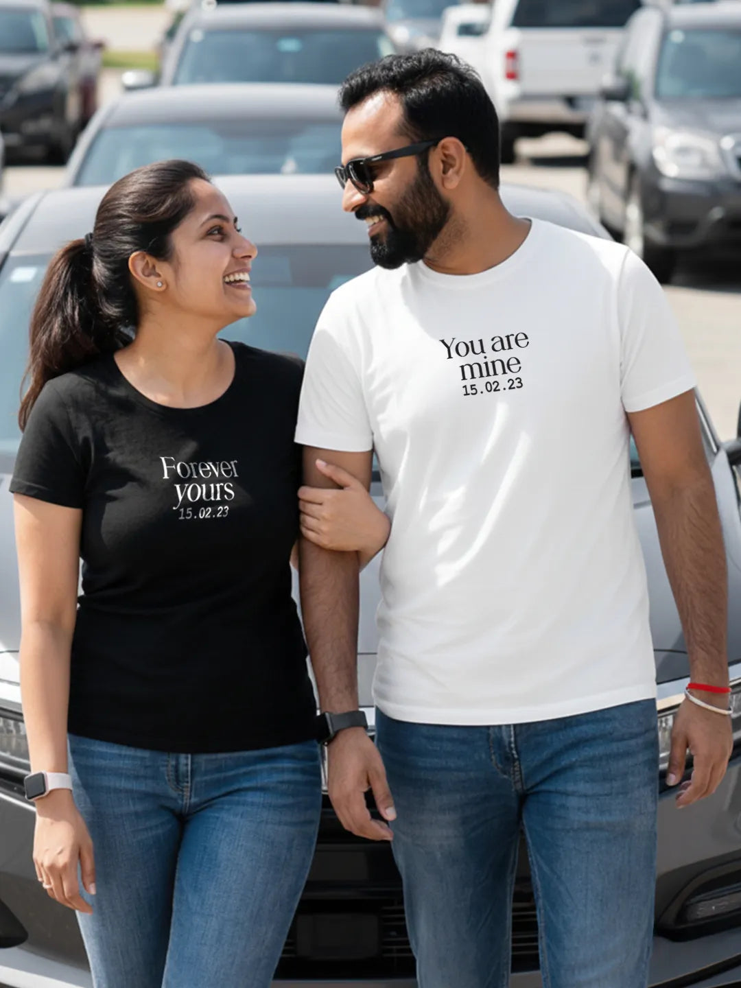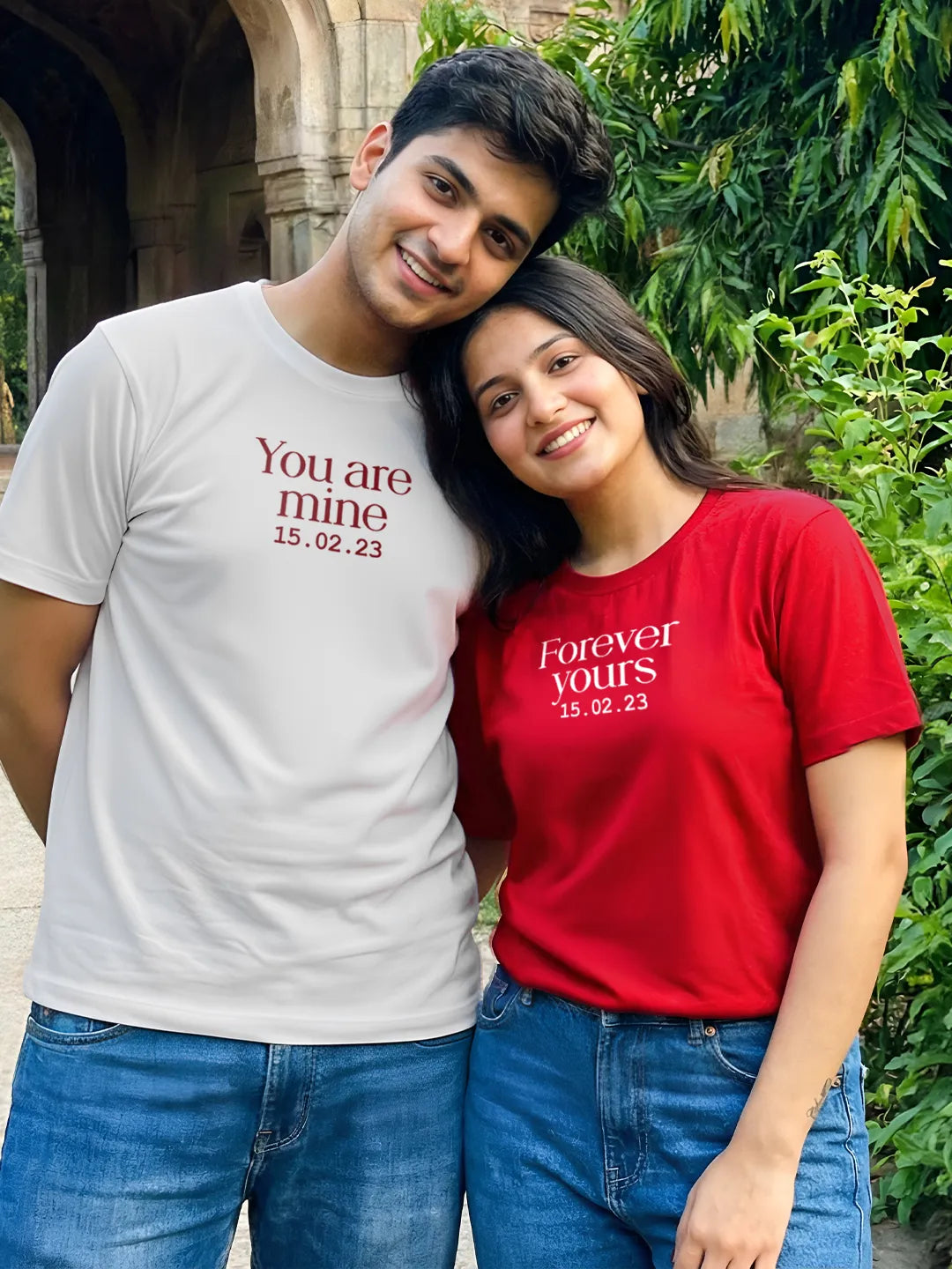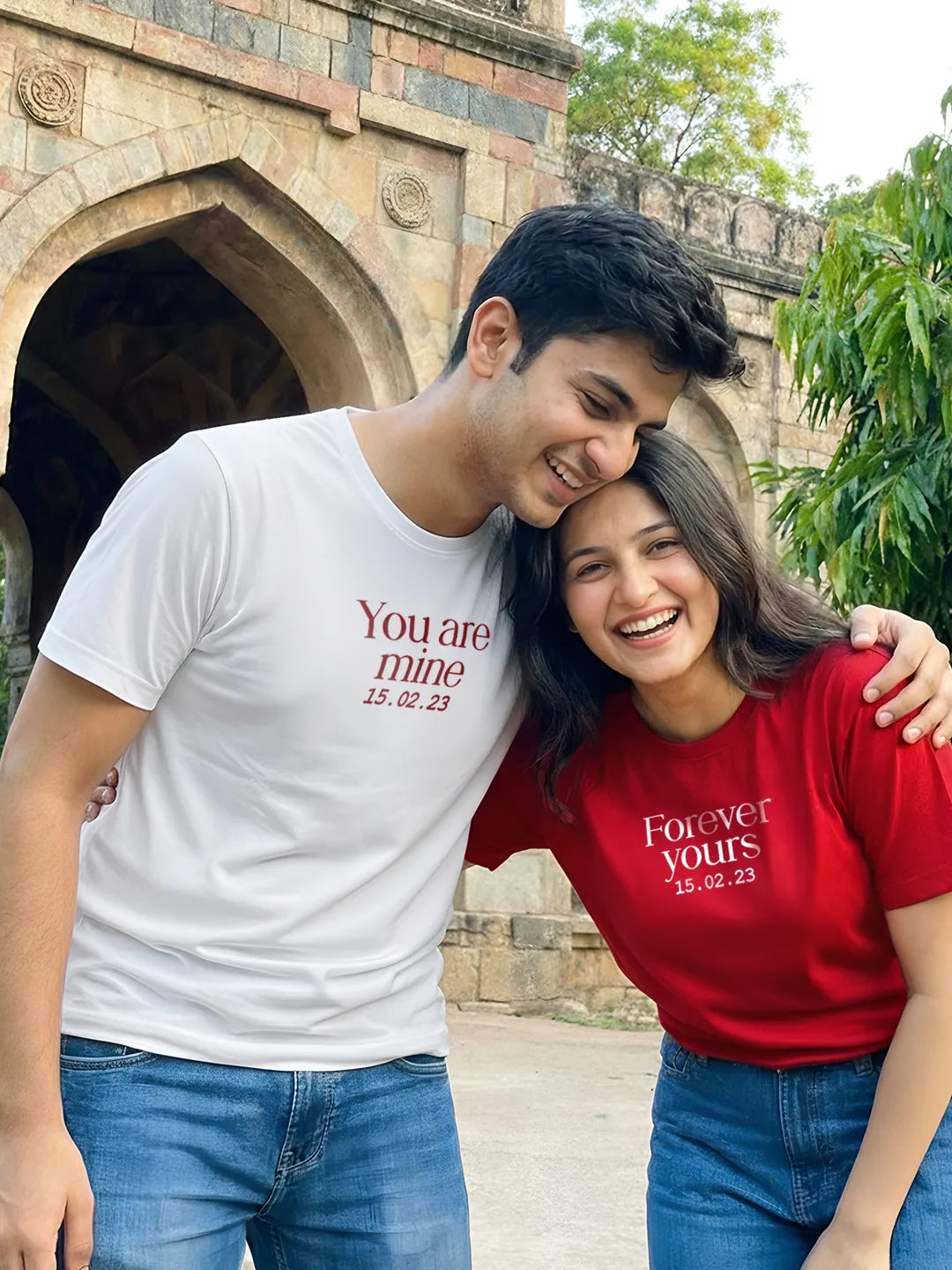 The classic white and red colour combination adds a perfect balance of elegance and romance. “You Are Mine” in rich red on the white tee and “Forever Yours” on the red tee create a striking contrast that feels bold, intimate, and unforgettable.