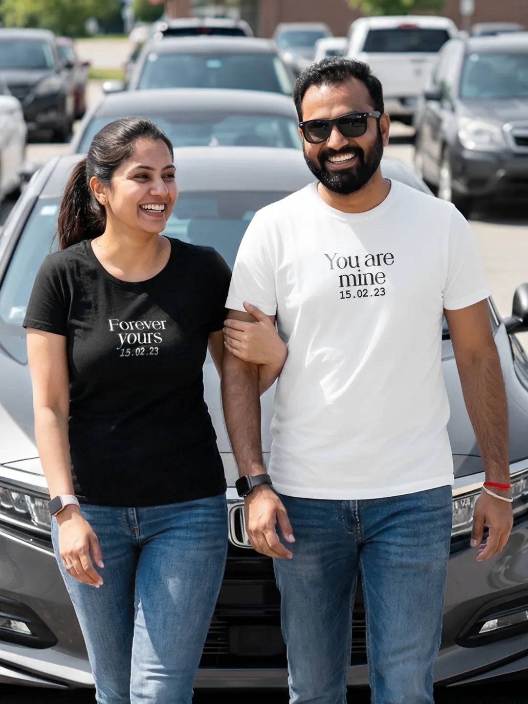 Celebrate a love that’s timeless, personal, and deeply meaningful with these Matching Couple T-Shirts – “You Are Mine / Forever Yours” Edition. Designed for couples who believe in forever, these tees beautifully capture commitment with a minimal yet heartfelt message — complete with a special date that marks your story.